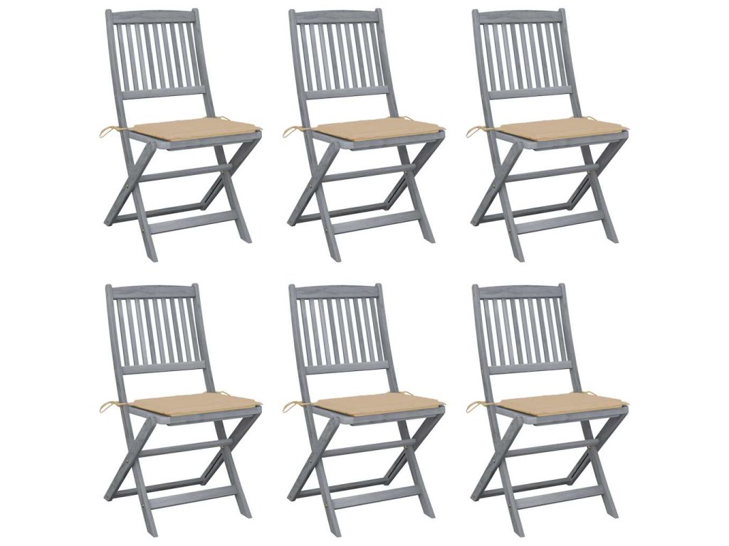 Tieto jedálenské stoličky sú vyrobené z masívneho akáciového dreva, tropického tvrdého dreva, ktoré je odolné voči poveternostným vplyvom a trvácne pre dlhé roky používania. Akáciový masív má dostatočnú silu, aby uniesol zaťaženie, ale odolá aj dlhodobému používaniu. Sivý premývaný povrch sa ľahko čistí vlhkou handričkou. Keď sa stoličky nepoužívajú, dajú sa sklopiť, aby sa ušetrilo miesto. Pribalený vankúš poskytuje vysoké pohodlie pri oddychu alebo stolovaní. Každý vankúš má dve sady šnúrok, pomocou ktorých ho pevne pripevníte k stoličke.