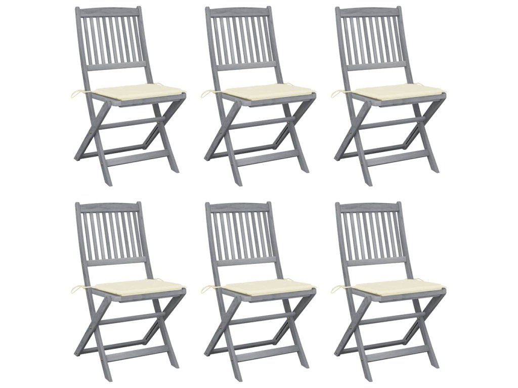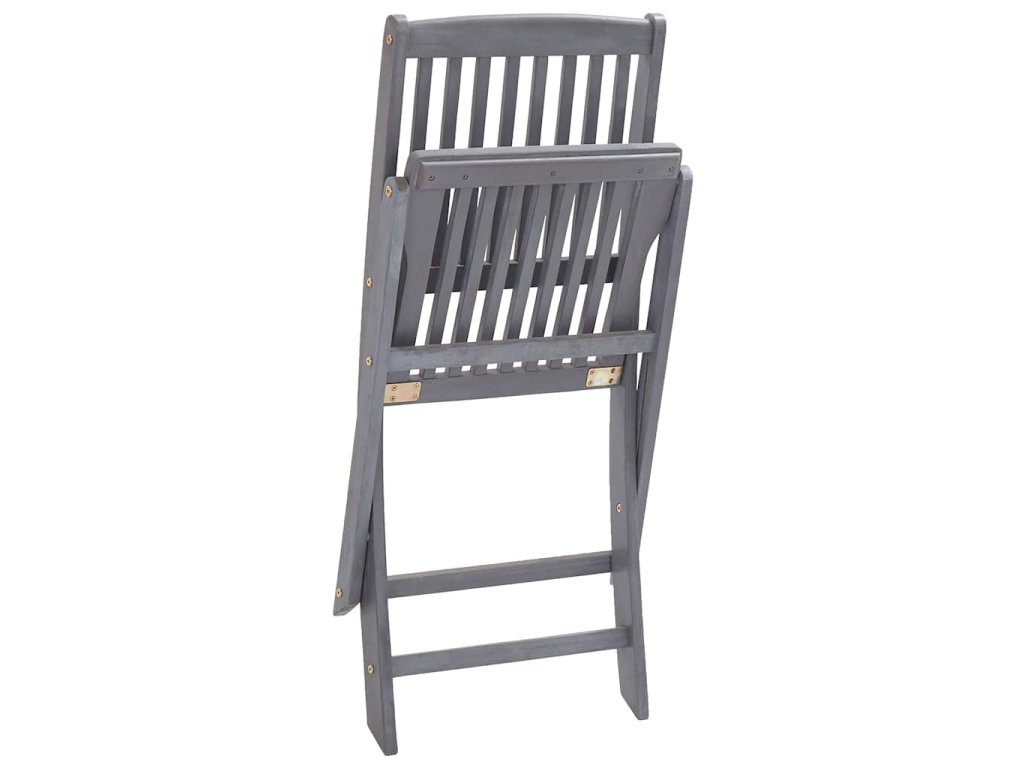 Tieto jedálenské stoličky sú vyrobené z masívneho akáciového dreva, tropického tvrdého dreva, ktoré je odolné voči poveternostným vplyvom a trvácne pre dlhé roky používania. Akáciový masív má dostatočnú silu, aby uniesol zaťaženie, ale odolá aj dlhodobému používaniu. Sivý premývaný povrch sa ľahko čistí vlhkou handričkou. Keď sa stoličky nepoužívajú, dajú sa sklopiť, aby sa ušetrilo miesto. Pribalený vankúš poskytuje vysoké pohodlie pri oddychu alebo stolovaní. Každý vankúš má dve sady šnúrok, pomocou ktorých ho pevne pripevníte k stoličke.