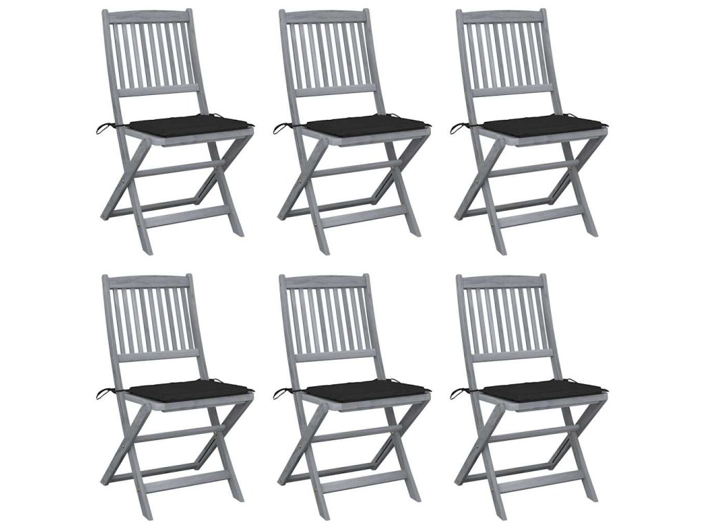 Tieto jedálenské stoličky sú vyrobené z masívneho akáciového dreva, tropického tvrdého dreva, ktoré je odolné voči poveternostným vplyvom a trvácne pre dlhé roky používania. Akáciový masív má dostatočnú silu, aby uniesol zaťaženie, ale odolá aj dlhodobému používaniu. Sivý premývaný povrch sa ľahko čistí vlhkou handričkou. Keď sa stoličky nepoužívajú, dajú sa sklopiť, aby sa ušetrilo miesto. Pribalený vankúš poskytuje vysoké pohodlie pri oddychu alebo stolovaní. Každý vankúš má dve sady šnúrok, pomocou ktorých ho pevne pripevníte k stoličke.