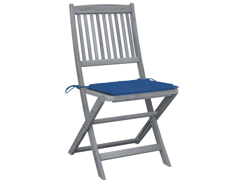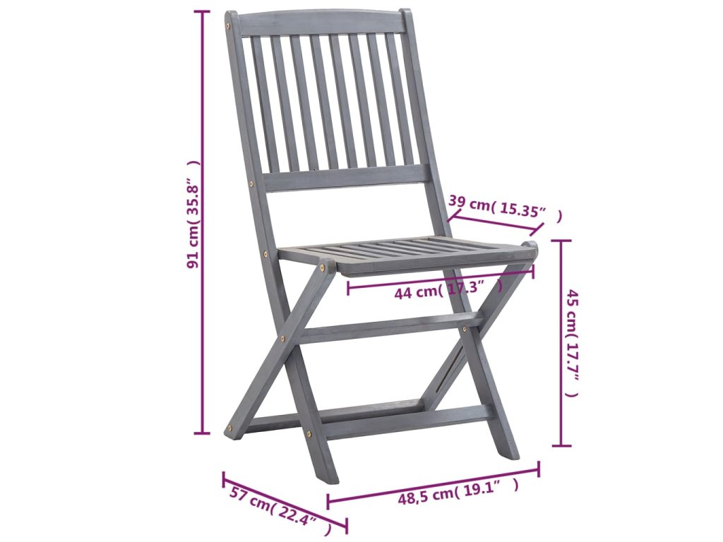 Tieto jedálenské stoličky sú vyrobené z masívneho akáciového dreva, tropického tvrdého dreva, ktoré je odolné voči poveternostným vplyvom a trvácne pre dlhé roky používania. Akáciový masív má dostatočnú silu, aby uniesol zaťaženie, ale odolá aj dlhodobému používaniu. Sivý premývaný povrch sa ľahko čistí vlhkou handričkou. Keď sa stoličky nepoužívajú, dajú sa sklopiť, aby sa ušetrilo miesto. Pribalený vankúš poskytuje vysoké pohodlie pri oddychu alebo stolovaní. Každý vankúš má dve sady šnúrok, pomocou ktorých ho pevne pripevníte k stoličke.