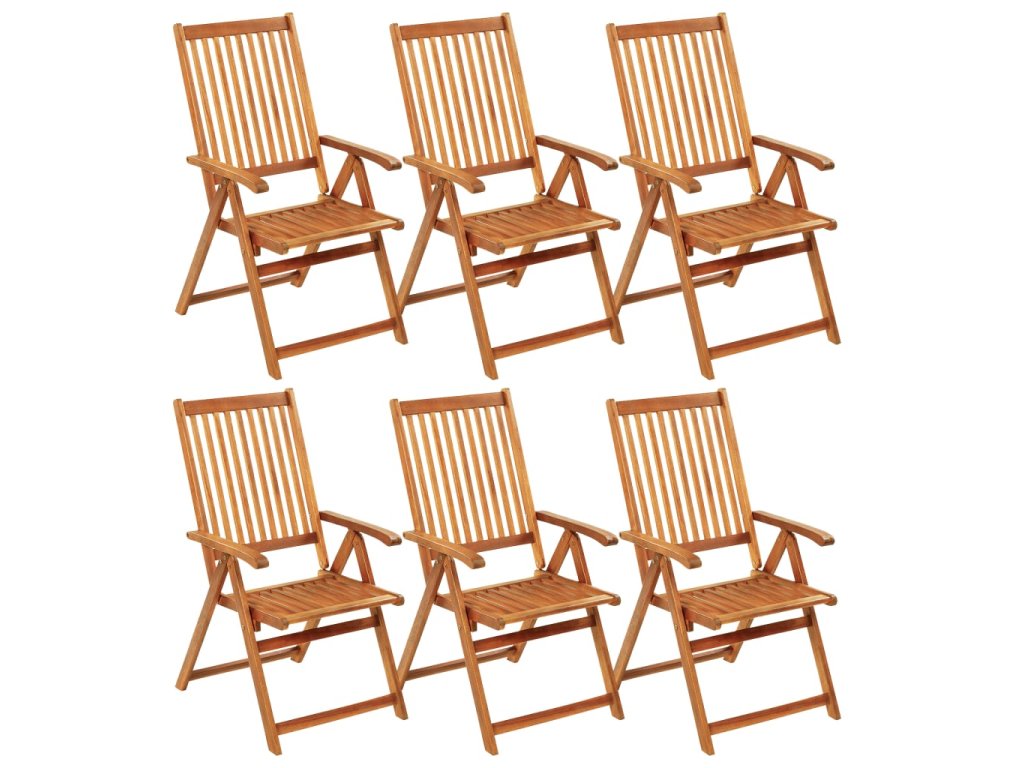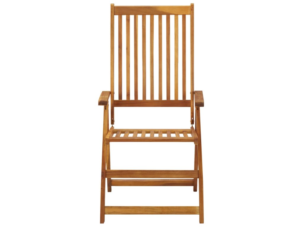 Skladacia stolička je vyrobená z masívneho akáciového dreva, tropického tvrdého dreva, vďaka čomu je stabilná a odolná. Olejom upravený povrch sa ľahko čistí vlhkou handričkou. Jedálenskú stoličku je možné nastaviť do 5 polôh, čo vám poskytne optimálne pohodlie počas sedenia. Môže sa tiež sklopiť, aby sa ušetrilo miesto, keď sa nepoužíva. Vankúš poskytuje ďalšie pohodlie pri leňošení alebo stolovaní. Každý vankúš má dve sady laniek na oboch stranách a elastický pás za operadlom na pripevnenie k stoličke.
