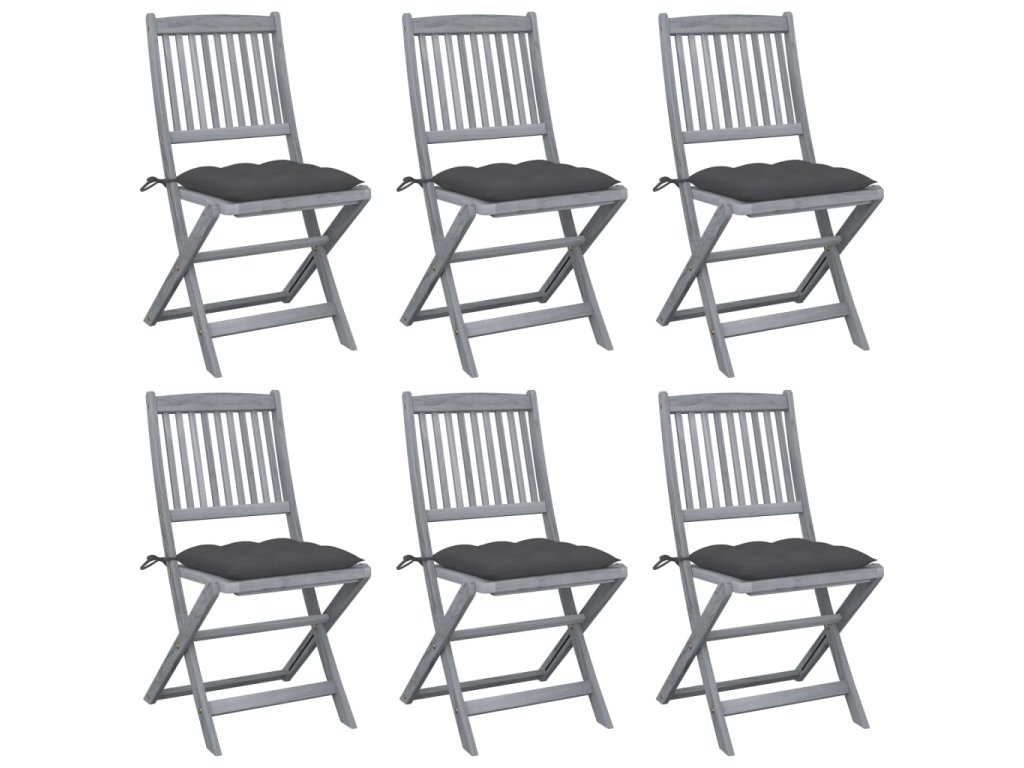 Tieto jedálenské stoličky sú vyrobené z masívneho akáciového dreva, tropického tvrdého dreva, ktoré je odolné voči poveternostným vplyvom a trvácne pre dlhé roky používania. Akáciový masív má dostatočnú silu, aby uniesol zaťaženie, ale odolá aj dlhodobému používaniu. Sivý premývaný povrch sa ľahko čistí vlhkou handričkou. Keď sa stoličky nepoužívajú, dajú sa sklopiť, aby sa ušetrilo miesto. Pribalený vankúš poskytuje vysoké pohodlie pri oddychu alebo stolovaní. Každý vankúš má dve sady šnúrok, pomocou ktorých ho pevne pripevníte k stoličke.