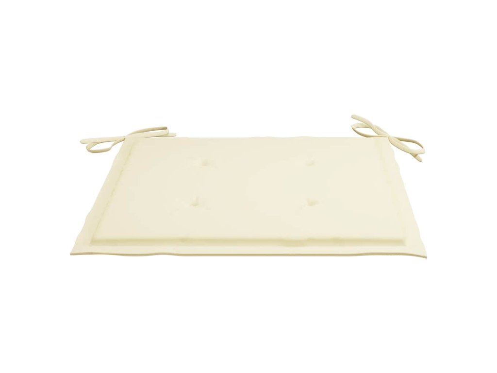 Táto sada tíkového nábytku je vyhotovená z mimoriadne trvácneho tvrdého tíkového dreva, ktoré bolo umelo vysušené v sušiarni a jeho povrch bol následne jemne obrúsený, aby získal hladký vzhľad. Tíkové drevo sa vyznačuje výnimočnou pevnosťou a odolnosťou voči poveternostným vplyvom, a tak predstavuje jeden z najvhodnejších materiálov na výrobu záhradného nábytku spomedzi všetkých ostatných druhov dreva. Ak si chcete zaobstarať záhradný nábytok, ktorý vám bude slúžiť dlhé roky, tíkové drevo je pre vás ako stvorené. Vďaka brúsenému povrchu sú jedálenské stoličky odolné voči poveternostným vplyvom a ľahko sa čistia. Môžu sa tiež zložiť a ušetriť tak úložný priestor, keď sa nepoužívajú. Navyše, pribalené vankúše poskytujú ďalšie pohodlie. Každý vankúš má 2 sady šnúrok, ktoré ho pevne prichytia k stoličke.