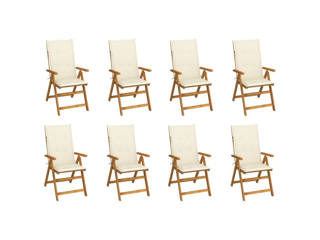 Skladacia stolička je vyrobená z masívneho akáciového dreva, tropického tvrdého dreva, vďaka čomu je stabilná a odolná. Olejom upravený povrch sa ľahko čistí vlhkou handričkou. Jedálenskú stoličku je možné nastaviť do 5 polôh, čo vám poskytne optimálne pohodlie počas sedenia. Môže sa tiež sklopiť, aby sa ušetrilo miesto, keď sa nepoužíva. Podložky poskytujú dodatočné pohodlie.