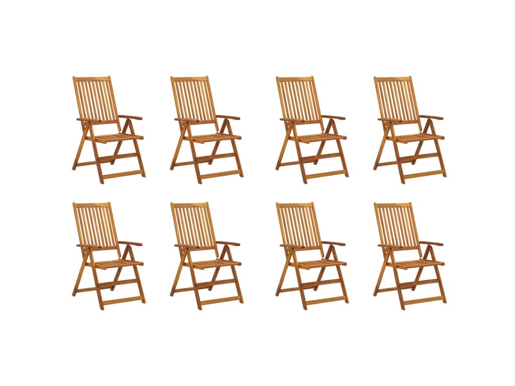 Skladacia stolička je vyrobená z masívneho akáciového dreva, tropického tvrdého dreva, vďaka čomu je stabilná a odolná. Olejom upravený povrch sa ľahko čistí vlhkou handričkou. Jedálenskú stoličku je možné nastaviť do 5 polôh, čo vám poskytne optimálne pohodlie počas sedenia. Môže sa tiež sklopiť, aby sa ušetrilo miesto, keď sa nepoužíva. Podložky poskytujú dodatočné pohodlie.