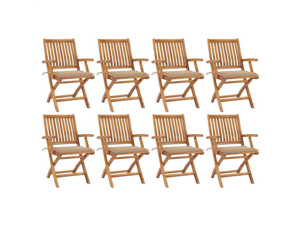 Táto sada tíkového nábytku je vyhotovená z mimoriadne trvácneho tvrdého tíkového dreva, ktoré bolo umelo vysušené v sušiarni a jeho povrch bol následne jemne obrúsený, aby získal hladký vzhľad. Tíkové drevo sa vyznačuje výnimočnou pevnosťou a odolnosťou voči poveternostným vplyvom, a tak predstavuje jeden z najvhodnejších materiálov na výrobu záhradného nábytku spomedzi všetkých ostatných druhov dreva. Ak si chcete zaobstarať záhradný nábytok, ktorý vám bude slúžiť dlhé roky, tíkové drevo je pre vás ako stvorené. Vďaka brúsenému povrchu sú jedálenské stoličky odolné voči poveternostným vplyvom a ľahko sa čistia. Môžu sa tiež zložiť a ušetriť tak úložný priestor, keď sa nepoužívajú. Navyše, pribalené vankúše poskytujú ďalšie pohodlie. Každý vankúš má 2 sady šnúrok, ktoré ho pevne prichytia k stoličke.