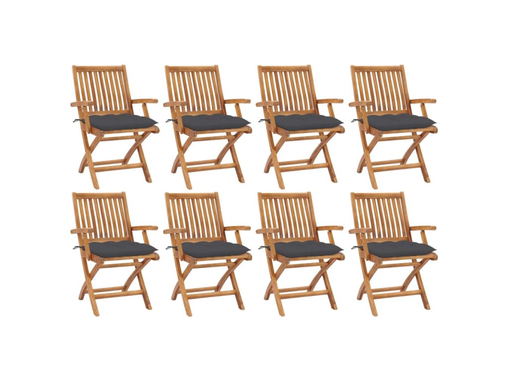 Táto sada tíkového nábytku je vyhotovená z mimoriadne trvácneho tvrdého tíkového dreva, ktoré bolo umelo vysušené v sušiarni a jeho povrch bol následne jemne obrúsený, aby získal hladký vzhľad. Tíkové drevo sa vyznačuje výnimočnou pevnosťou a odolnosťou voči poveternostným vplyvom, a tak predstavuje jeden z najvhodnejších materiálov na výrobu záhradného nábytku spomedzi všetkých ostatných druhov dreva. Ak si chcete zaobstarať záhradný nábytok, ktorý vám bude slúžiť dlhé roky, tíkové drevo je pre vás ako stvorené. Vďaka brúsenému povrchu sú jedálenské stoličky odolné voči poveternostným vplyvom a ľahko sa čistia. Môžu sa tiež zložiť a ušetriť tak úložný priestor, keď sa nepoužívajú. Navyše, pribalené vankúše poskytujú ďalšie pohodlie. Každý vankúš má 2 sady šnúrok, ktoré ho pevne prichytia k stoličke.