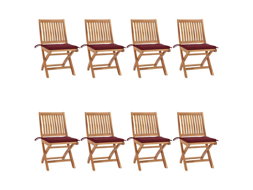 Táto sada tíkového nábytku je vyhotovená z mimoriadne trvácneho tvrdého tíkového dreva, ktoré bolo umelo vysušené v sušiarni a jeho povrch bol následne jemne obrúsený, aby získal hladký vzhľad. Tíkové drevo sa vyznačuje výnimočnou pevnosťou a odolnosťou voči poveternostným vplyvom, a tak predstavuje jeden z najvhodnejších materiálov na výrobu záhradného nábytku spomedzi všetkých ostatných druhov dreva. Ak si chcete zaobstarať záhradný nábytok, ktorý vám bude slúžiť dlhé roky, tíkové drevo je pre vás ako stvorené. Vďaka brúsenému povrchu sú jedálenské stoličky odolné voči poveternostným vplyvom a ľahko sa čistia. Môžu sa tiež zložiť a ušetriť tak úložný priestor, keď sa nepoužívajú. Navyše, pribalené vankúše poskytujú ďalšie pohodlie. Každý vankúš má 2 sady šnúrok, ktoré ho pevne prichytia k stoličke.