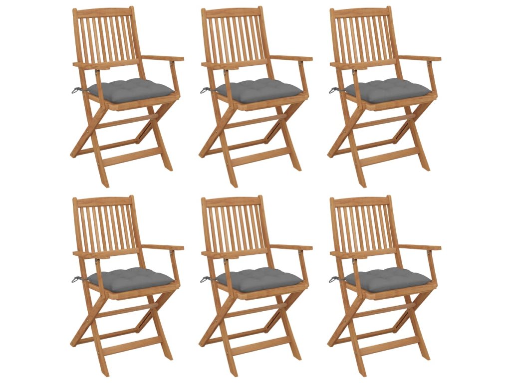 Tieto záhradné stoličky sú vyrobené z masívneho akáciového dreva, vďaka čomu sú pevné a stabilné. Masívne akáciové drevo je pevné, aby unieslo veľkú záťaž a tiež dobre znáša opotrebovanie času. Preto môžu tieto vonkajšie stoličky poskytnúť roky relaxácie. Okrem toho je možné stoličky sklopiť, aby sa ušetrilo miesto, keď sa nepoužívajú. Priložené vankúše ešte viac zvyšujú pohodlie. Každý vankúš má dve sady šnúrok, za ktoré sa pevne pripevní k stoličke.