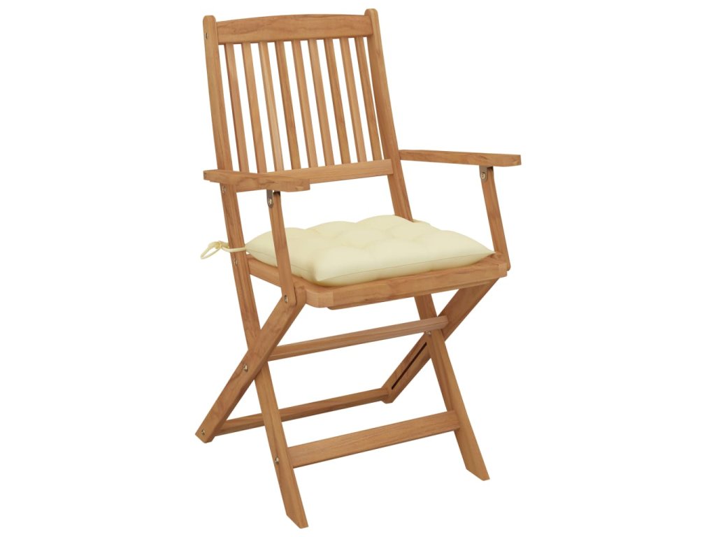 Tieto skladacie stoličky z masívneho akáciového dreva s podložkami poskytujú ideálne miesto na odpočinok a užívanie si slnečných lúčov na záhrade alebo terase.