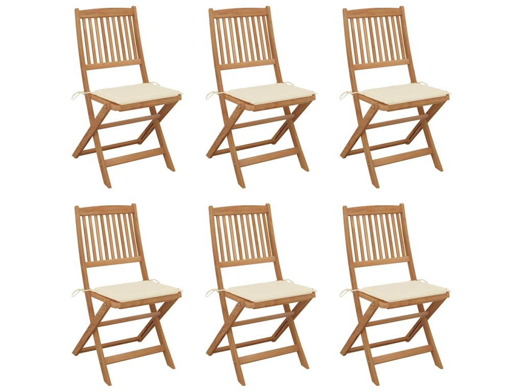 Tieto skladacie stoličky z masívneho akáciového dreva s podložkami poskytujú ideálne miesto na odpočinok a užívanie si slnečných lúčov na záhrade alebo terase.