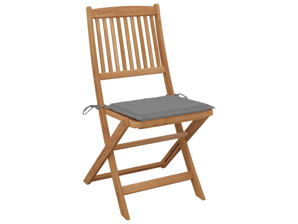 Tieto skladacie stoličky z masívneho akáciového dreva s podložkami poskytujú ideálne miesto na odpočinok a užívanie si slnečných lúčov na záhrade alebo terase.