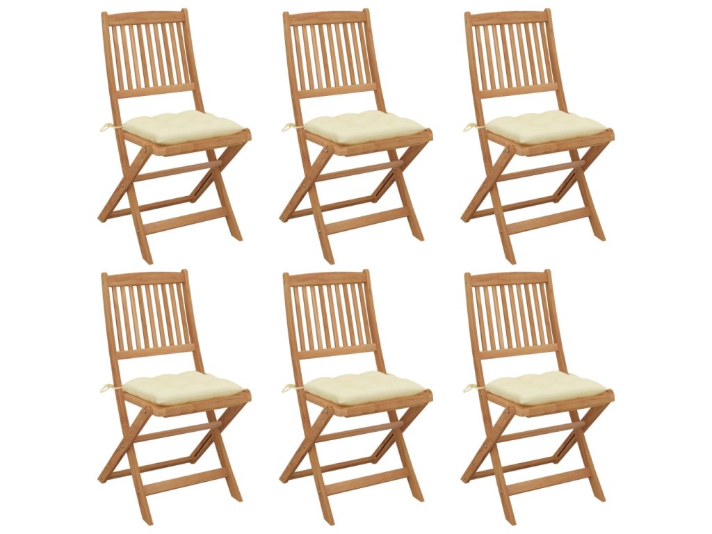 Tieto skladacie stoličky z masívneho akáciového dreva s podložkami poskytujú ideálne miesto na odpočinok a užívanie si slnečných lúčov na záhrade alebo terase.