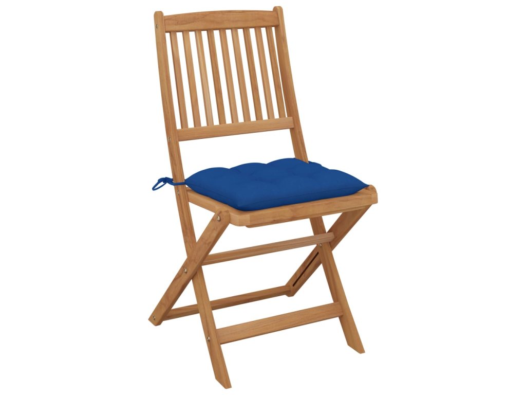 Tieto skladacie stoličky z masívneho akáciového dreva s podložkami poskytujú ideálne miesto na odpočinok a užívanie si slnečných lúčov na záhrade alebo terase.
