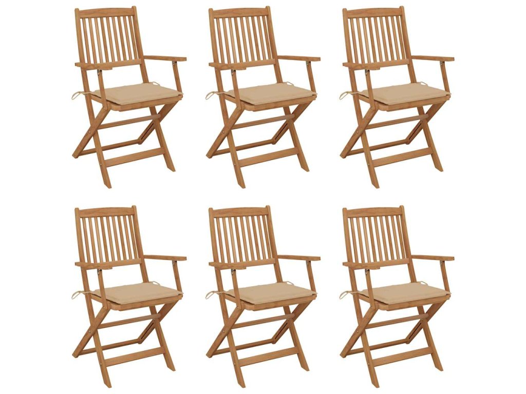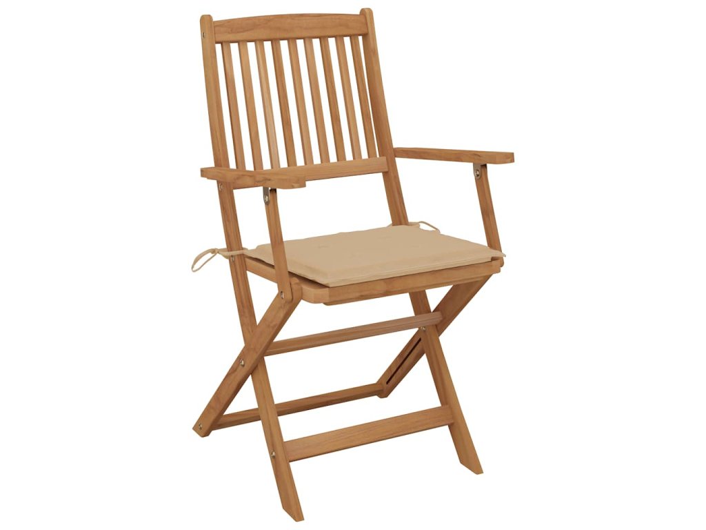 Tieto skladacie stoličky z masívneho akáciového dreva s podložkami poskytujú ideálne miesto na odpočinok a užívanie si slnečných lúčov na záhrade alebo terase.