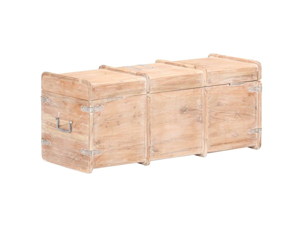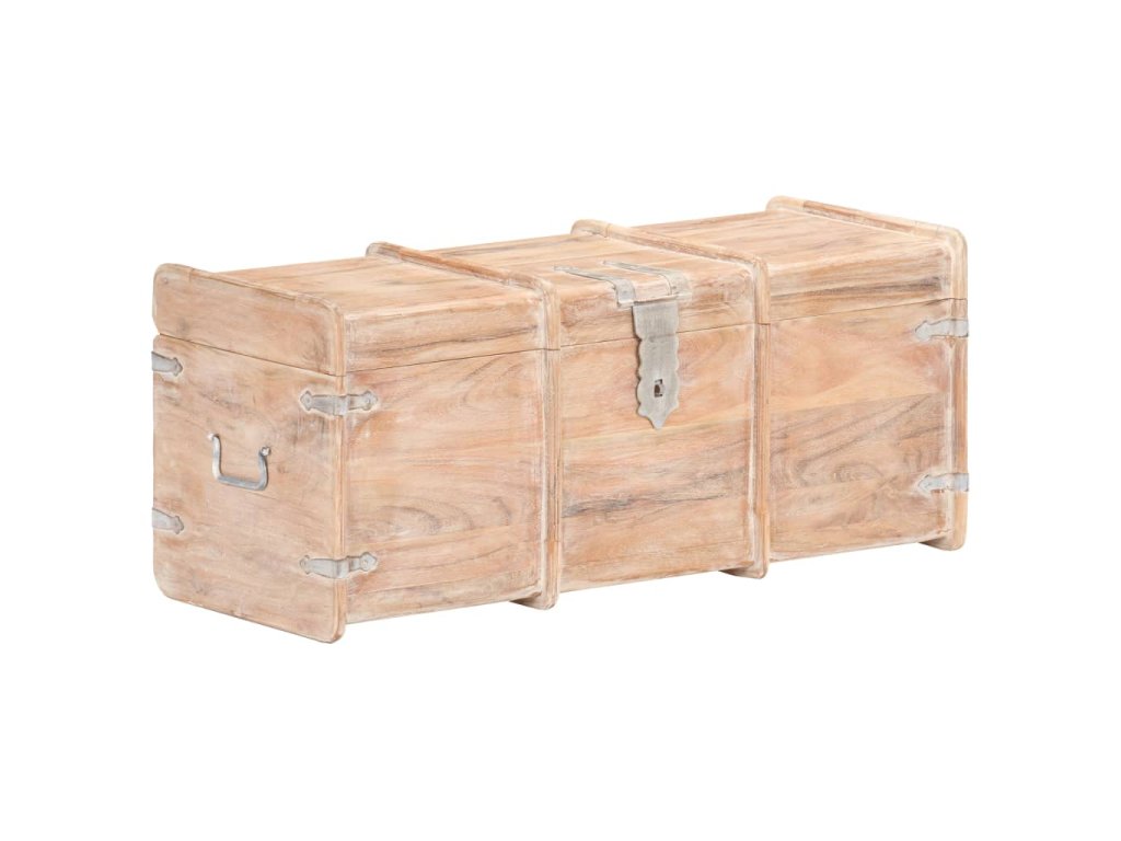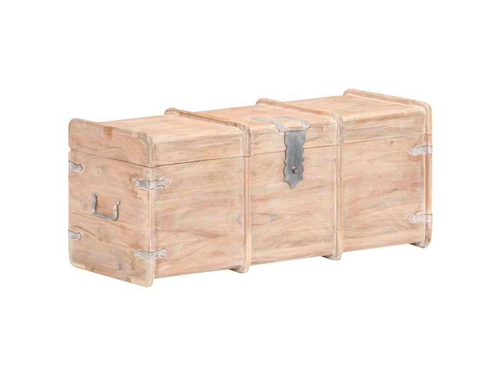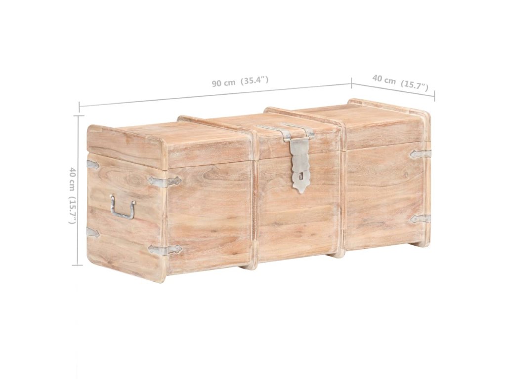 Skladovacia skrinka je vyrobená z akáciového masívu, vďaka čomu je stabilná a trvácna. Na prednej strane sa nachádza západka a po stranách nájdete dve rúčky, za ktoré môžete truhlicu zdvhnúť. Vďaka stabilnej a plochej vrchnej časti poslúži ako ideálne miesto na vystavenie dekorácií. Vďaka remeselnému opracovaniu a krásnej textúre dreva je každý kus nábytku jedinečný a trochu odlišný od ostatných.