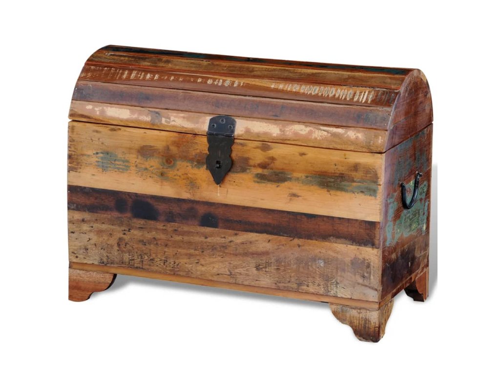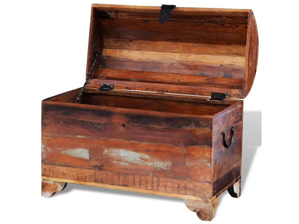 Truhlica je vyrobená z recyklovaného dreva, a preto nenájdete dva rovnaké kúsky tohto nábytku - každý je jedinečný. Recyklované drevo má podobné vlastnosti ako napríklad tíkové, akáciové, mangové drevo, drevo z damarovníka a podobne. Takéto drevo je pevné, stabilné, trvácne a má zaujímavú textúru. Vyskytnú sa na ňom aj dierky po klincoch, ktoré so sebou nesú svoj príbeh a podnecujú budúcich majiteľov k tomu, aby na svojom novom nábytku zanechali vlastnú stopu aj oni. Tento výrobok tiež poukazuje na to, že jeho majiteľovi záleží na ochrane životného prostredia, udržateľnom rozvoji a na tom, aby sa neplytvalo prírodnými zdrojmi.