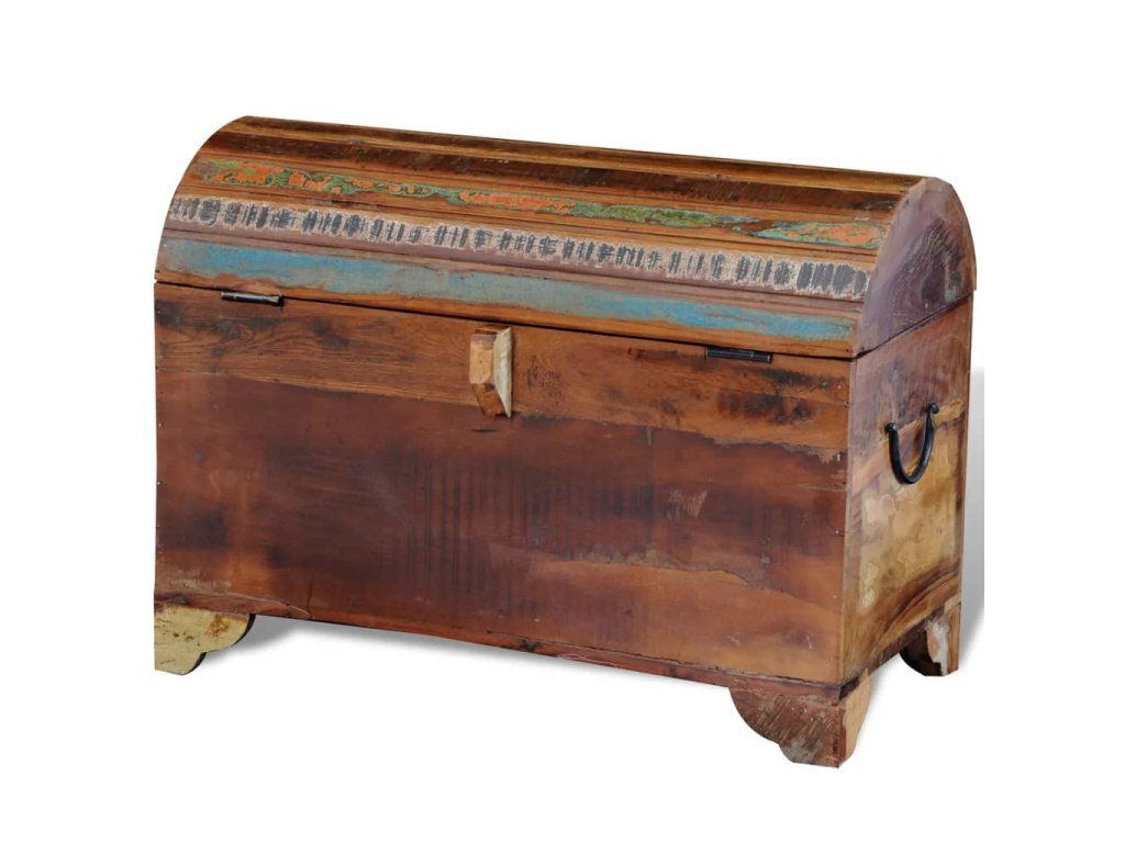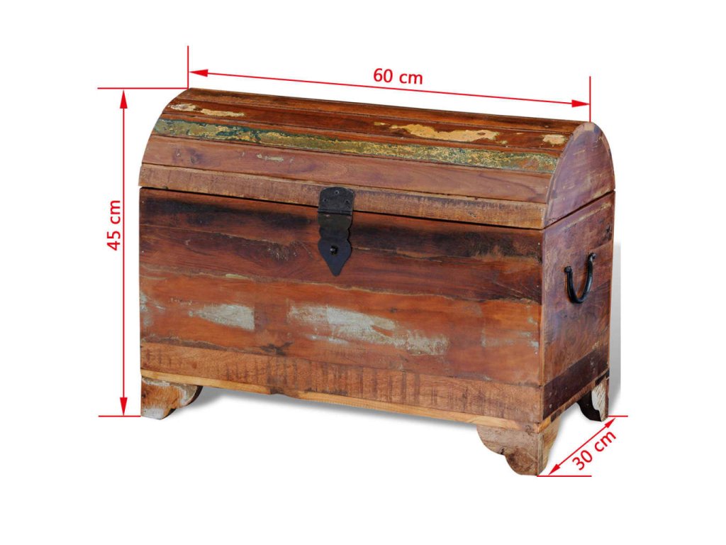 Truhlica je navyše kompletne ručne opracovaná, čo jej dodáva pôsobivý vintage vzhľad a exotický štýl. Spracovávanie už použitého dreva do nového výrobku si vyžaduje starostlivý proces leštenia, natierania a voskovania. Táto truhlica so starožitným vzhľadom sa určite stane perfektným doplnkom do vašej domácnosti!