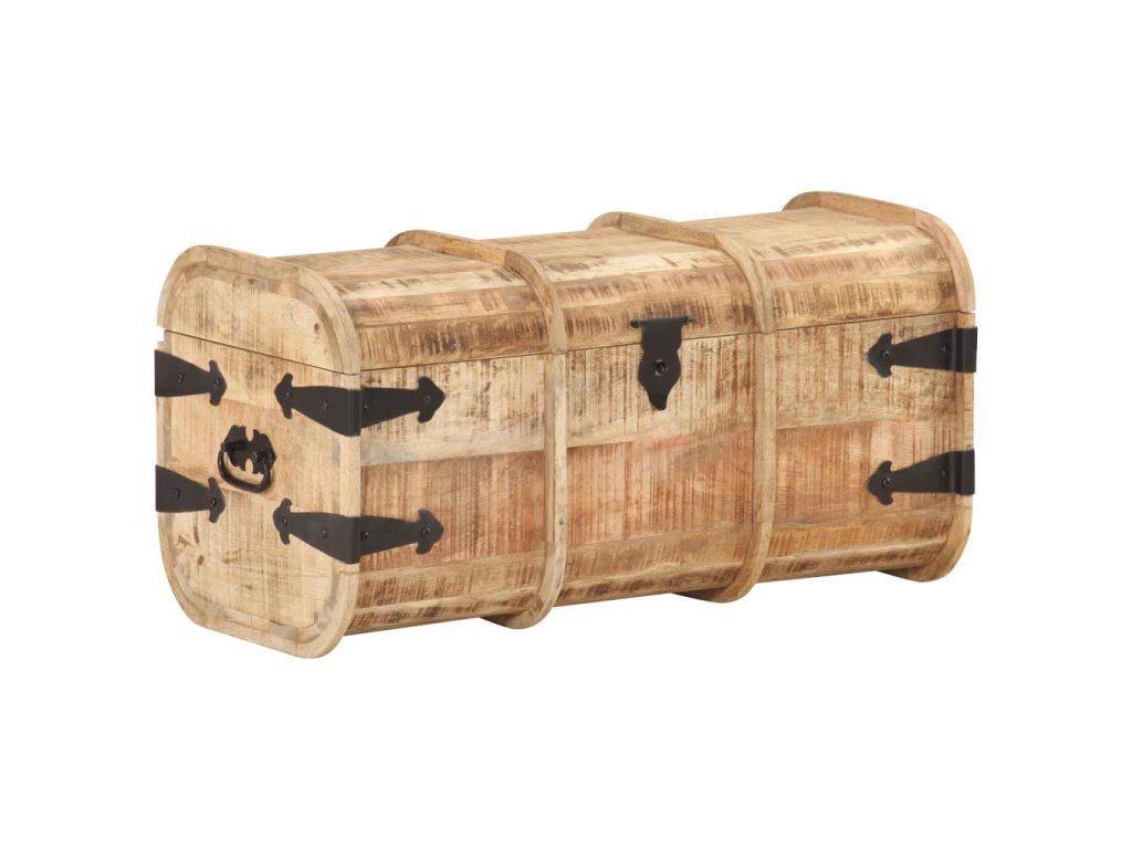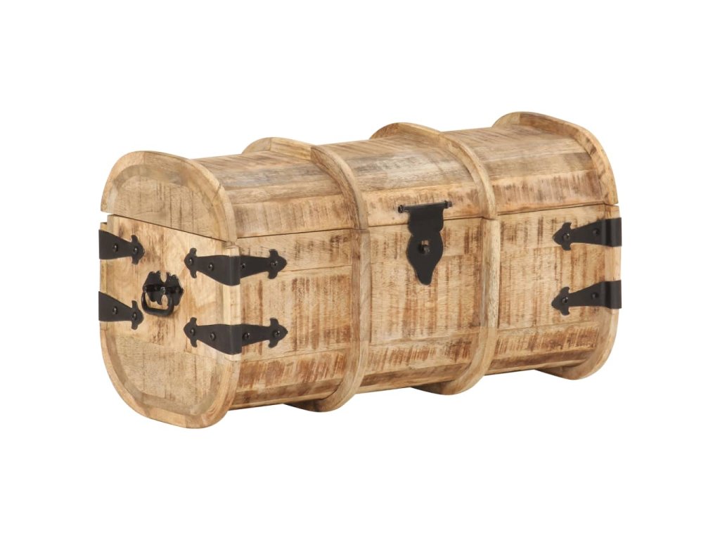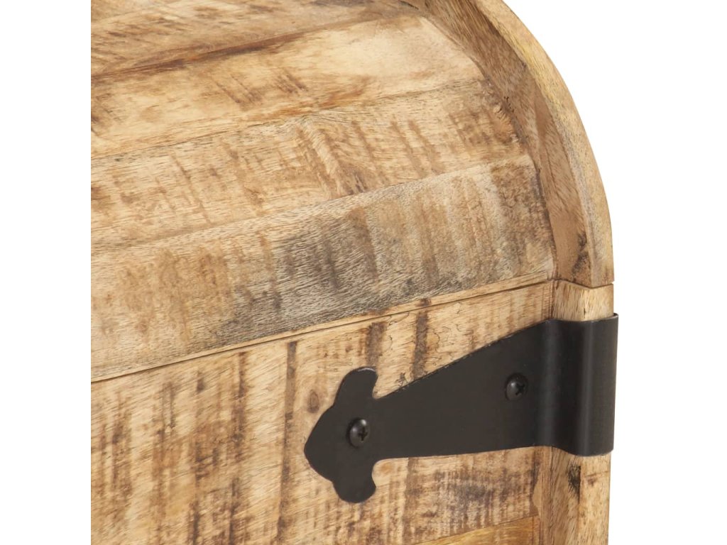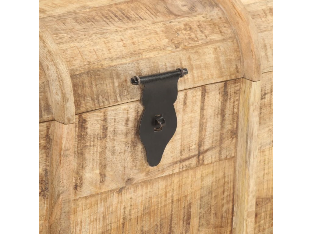Masívne mangovníkové drevo je tropické tvrdé drevo, ktoré sa môže pochváliť nielen pevnosťou, ktorá unesie veľkú hmotnosť, ale aj odolnosťou voči opotrebovaniu. Vďaka vynikajúcemu remeselnému spracovaniu a krásnej drevenej štruktúre je každá truhlica mierne odlišná od ostatných kusov. Každá drevená truhlica má vpredu západku a na boku dve praktické rúčky.