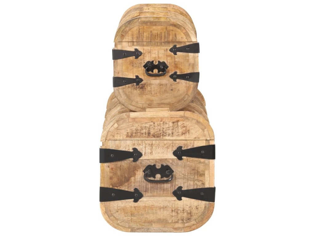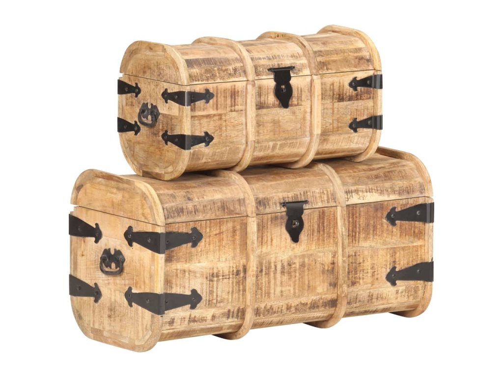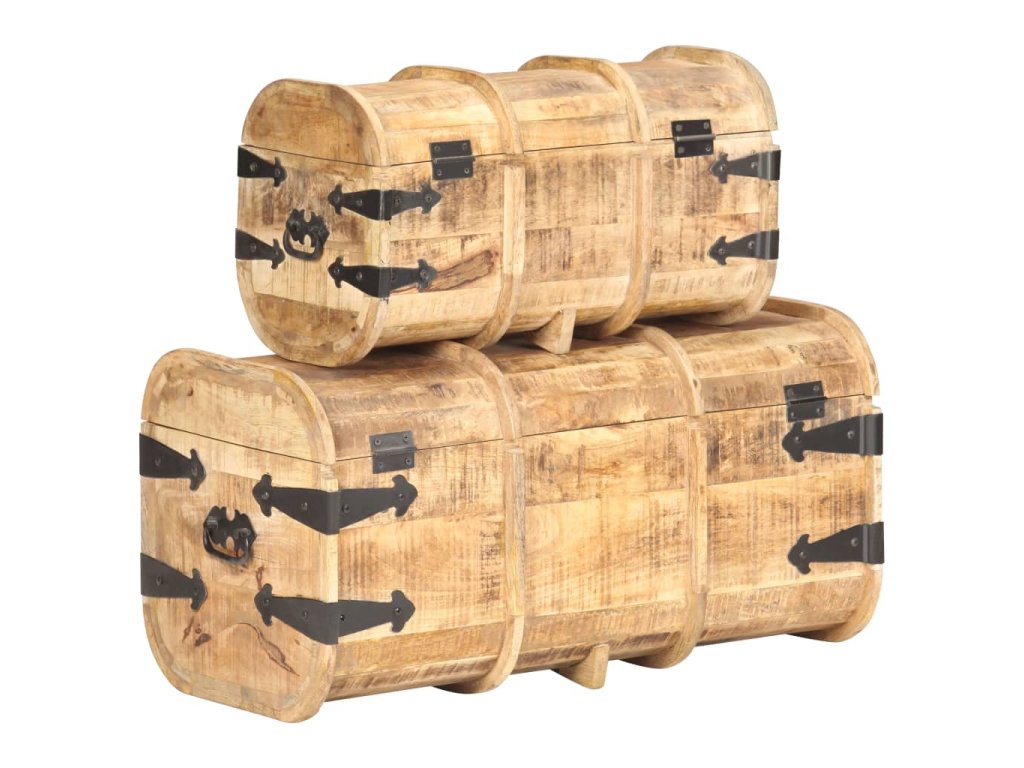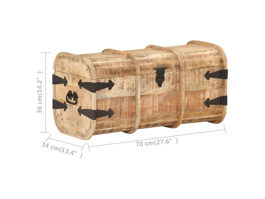 Masívne mangovníkové drevo je tropické tvrdé drevo, ktoré sa môže pochváliť nielen pevnosťou, ktorá unesie veľkú hmotnosť, ale aj odolnosťou voči opotrebovaniu. Vďaka vynikajúcemu remeselnému spracovaniu a krásnej drevenej štruktúre je každá truhlica mierne odlišná od ostatných kusov. Každá drevená truhlica má vpredu západku a na boku dve praktické rúčky.