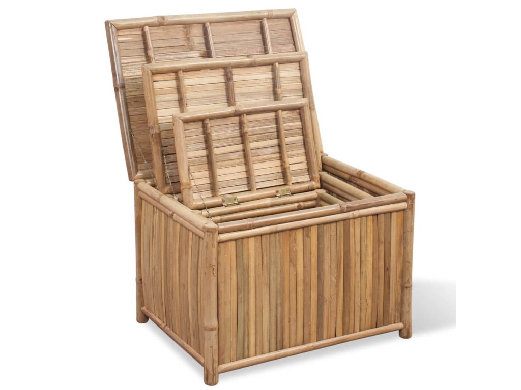 Truhlice sú vyrobené z kvalitného bambusu, ktorý sa vyznačuje vynikajúcou trvácnosťou a odolnosťou voči poveternostným vplyvom. Navyše sa dajú jednoducho očistiť - stačí ich len pretrieť navlhčenou handričkou. V balení sa nachádzajú 3 skladovacie truhlice.