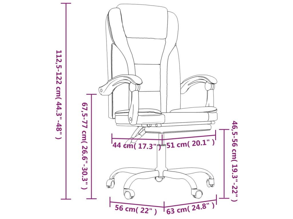 - Rozmery v polohe na ležanie: 63 x 128,5 x (100-109,5) cm (Š x H x V)