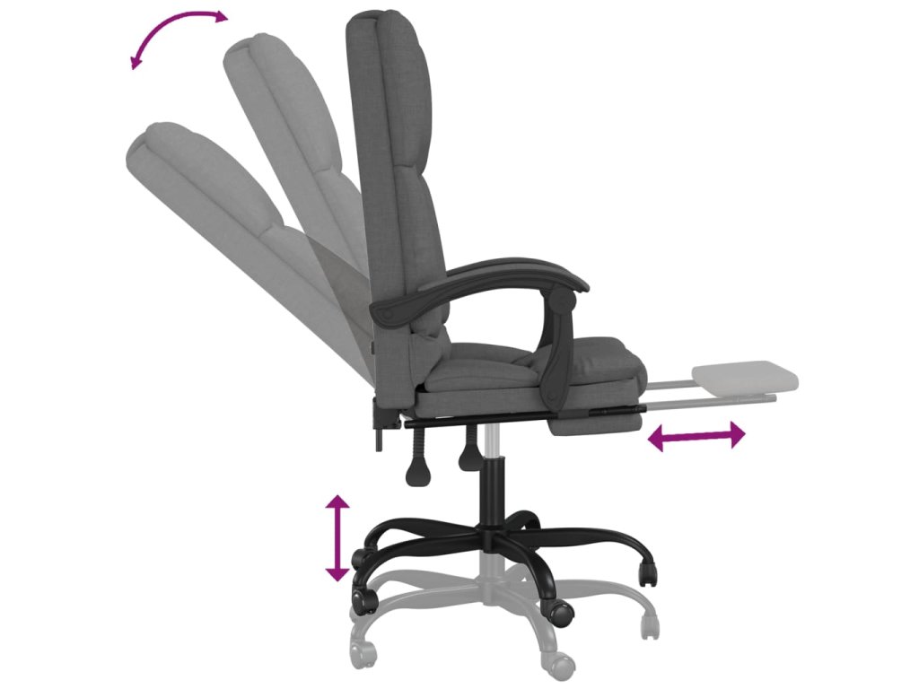 - Nastaviteľné operadlo a výška: Je špeciálne navrhnuté s funkciou sklápania, aby ste si mohli nastaviť operadlo a opierku nôh podľa svojho pohodlia. Pomocou páky si nastavte výšku sedadla podľa svojich predstáv.