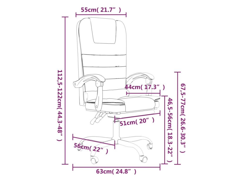 - Rozmery v polohe na ležanie: 63 x 128,5 x (100-109,5) cm (Š x H x V)