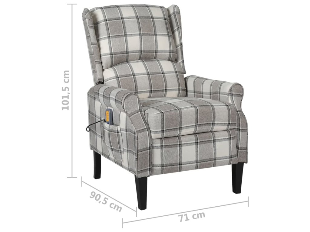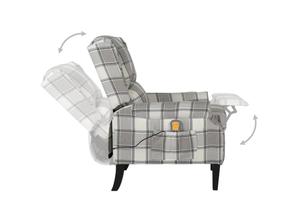 Elektrické masážne kreslo je vyrobené z látky a podopierané drevenými nožičkami, vďaka čomu je pevné a mäkké na sedenie. Masážne kreslo má 6 masážnych bodov pre chrbát, sedadlo a nohy. Pomocou ručného ovládania, ktoré je súčasťou balenia, si môžete zvoliť rôzne masážne programy. Operadlo sa navyše dá sklopiť a opierka na nohy, naopak, zdvihnúť, a tak si na kresle budete môcť aj pohodlne poležať. Elektrické masážne kreslo je tiež vybavené bočným vreckom na ručné ovládanie.