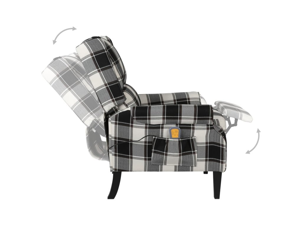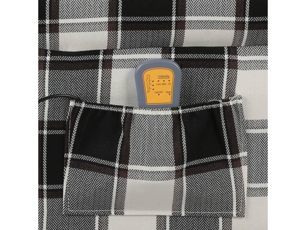 Elektrické masážne kreslo je vyrobené z látky a podopierané drevenými nožičkami, vďaka čomu je pevné a mäkké na sedenie. Masážne kreslo má 6 masážnych bodov pre chrbát, sedadlo a nohy. Pomocou ručného ovládania, ktoré je súčasťou balenia, si môžete zvoliť rôzne masážne programy. Operadlo sa navyše dá sklopiť a opierka na nohy, naopak, zdvihnúť, a tak si na kresle budete môcť aj pohodlne poležať. Elektrické masážne kreslo je tiež vybavené bočným vreckom na ručné ovládanie.