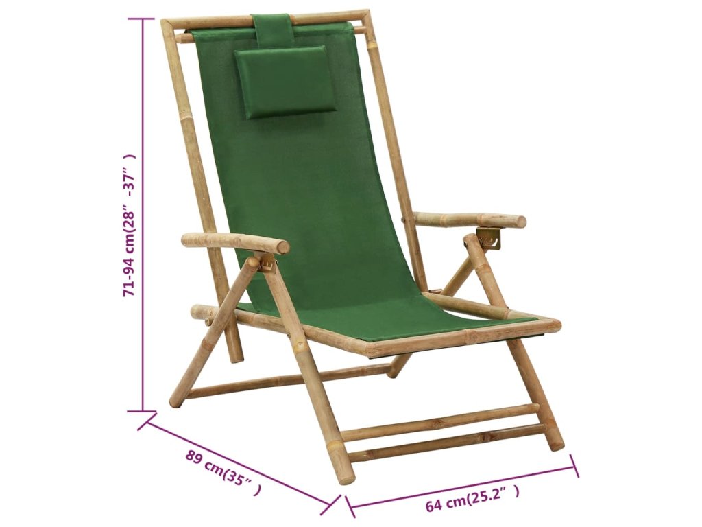 Skladacia stolička je vyrobená z bambusu, a je pevná a ľahko sa čistí. Látková sedačka a operadlo umožňujú pohodlné sedenie na stoličke. Pribalený vankúš navyše zvyšuje pohodlie sedenia na záhradnej stoličke. Operadlo vonkajšej stoličky je možné nastaviť do 4 polôh podľa vašich požiadaviek. Ležadlo je navyše možné sklopiť, aby sa ušetrilo miesto, keď sa nepoužíva.