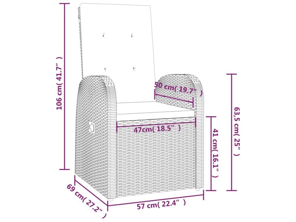 Kreslá sú vyrobené z PE ratanu, ktorý je odolný voči poveternostným vplyvom, takže sa ľahko čistia, sú odolné a vhodné na každodenné používanie. Oceľový rám s práškovou povrchovou úpravou kreslám dodáva pevnosť a trvácnosť. Sklápacie kreslá vám poskytnú potrebné pohodlie pri sedení. Stačí zatlačiť tlačidlo v bočnej časti a operadlo sa sklopí. Kreslá majú ľahkú konštrukciu, a tak sa dajú jednoducho premiestňovať. Dodávajú sa spolu s veľmi pohodlnými, nahusto vyčalúnenými podložkami na sedadlo, ktoré prinášajú optimálny komfort. Montáž je jednduchá.