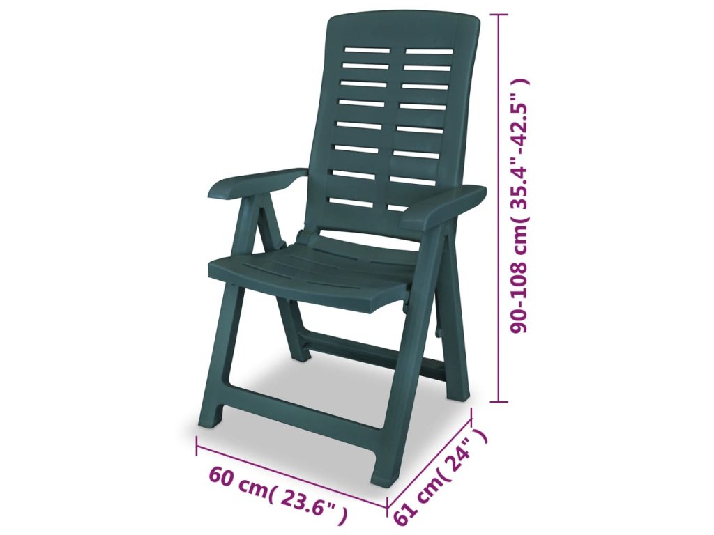 Sklápacie stoličky sú vyrobené z trvácneho plastu, vďaka čomu sú odolné voči poveternostným vplyvom a ľahko sa čistia. Operadlá stoličiek sa dajú sklopiť do 4 polôh, aby ste si vždy mohli nájsť čo najpohodlnejšiu polohu. Sú ľahké, a tak ich môžete jednoducho premiestňovať. Stoličky sa dajú poskladať, aby nezaberali veľa miesta, keď sa nepoužívajú.