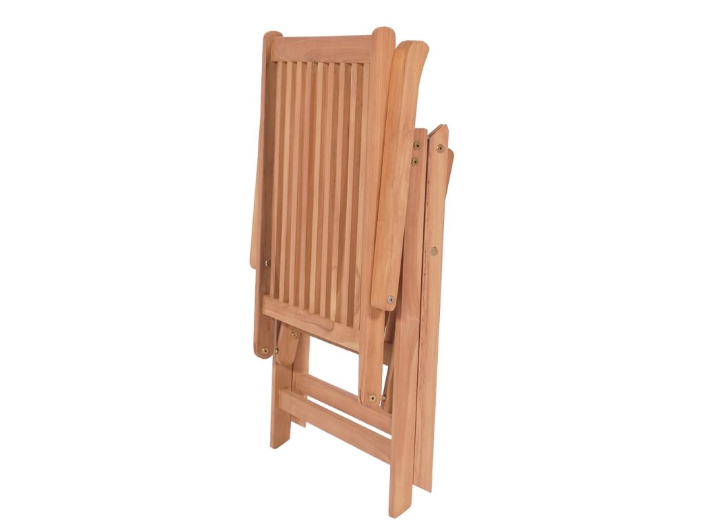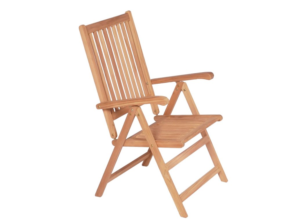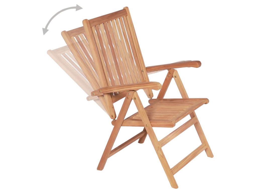 Skladacia polohovateľná drevená stolička má klasický dizajn. Tíkový nábytok je vyhotovený z mimoriadne trvácneho tvrdého tíkového dreva, ktoré bolo umelo vysušené v sušiarni a jeho povrch bol následne jemne obrúsený, aby získal hladký vzhľad. Tíkové drevo sa vyznačuje výnimočnou pevnosťou a odolnosťou voči poveternostným vplyvom, a tak predstavuje jeden z najvhodnejších materiálov na výrobu záhradného nábytku spomedzi všetkých ostatných druhov dreva. Ak si chcete zaobstarať záhradný nábytok, ktorý vám bude slúžiť dlhé roky, tíkové drevo je pre vás ako stvorené.