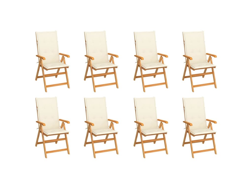 Skladacia polohovateľná drevená stolička má klasický dizajn. Tíkový nábytok je vyhotovený z mimoriadne trvácneho tvrdého tíkového dreva, ktoré bolo umelo vysušené v sušiarni a jeho povrch bol následne jemne obrúsený, aby získal hladký vzhľad. Tíkové drevo sa vyznačuje výnimočnou pevnosťou a odolnosťou voči poveternostným vplyvom, a tak predstavuje jeden z najvhodnejších materiálov na výrobu záhradného nábytku spomedzi všetkých ostatných druhov dreva. Ak si chcete zaobstarať záhradný nábytok, ktorý vám bude slúžiť dlhé roky, tíkové drevo je pre vás ako stvorené. Operadlo kresla je možné nastaviť do 7 polôh, takže vždy nájdete tú najpohodlnejšiu polohu. Kreslo je tiež ľahké, čo uľahčuje jeho premiestňovanie. Jedálenskú stoličku je možné sklopiť, aby sa ušetrilo miesto, keď sa nepoužíva. Navyše, pribalené vankúše poskytujú ďalšie pohodlie. Každý vankúš má gumičku a dve sady šnúrok, pomocou ktorých sa pevne pripevní na stoličku.