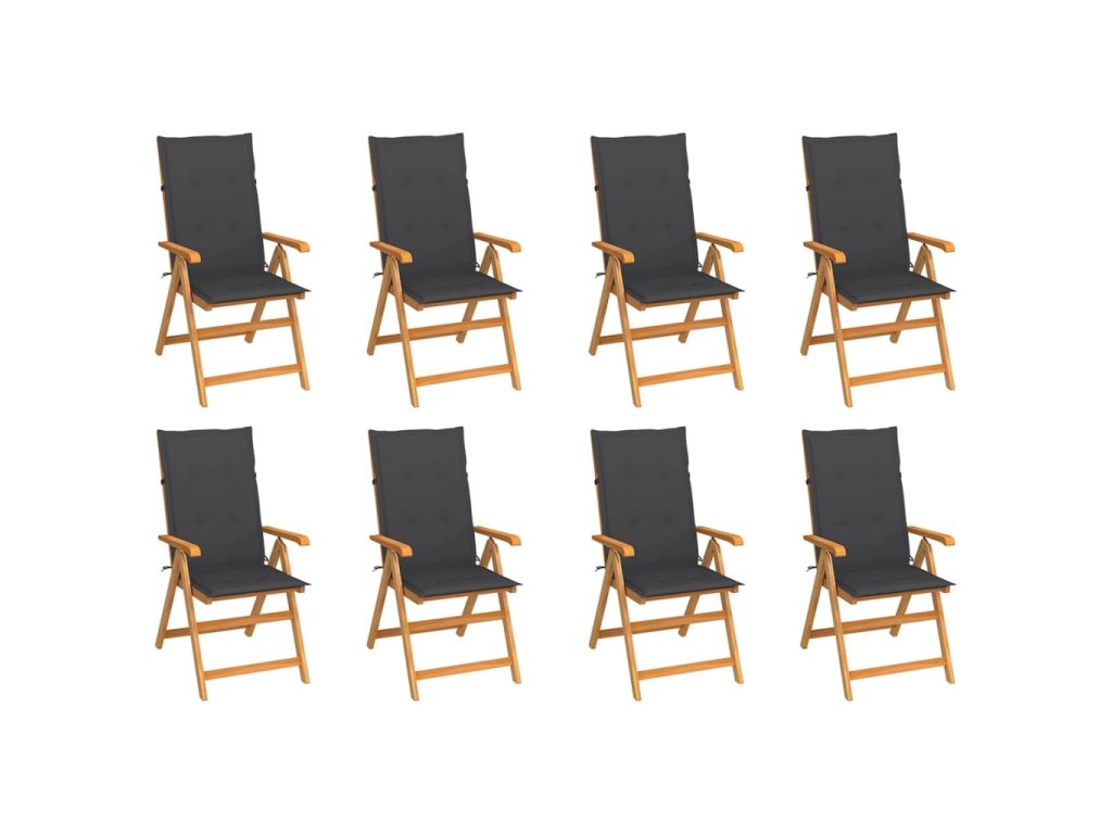 Skladacia polohovateľná drevená stolička má klasický dizajn. Tíkový nábytok je vyhotovený z mimoriadne trvácneho tvrdého tíkového dreva, ktoré bolo umelo vysušené v sušiarni a jeho povrch bol následne jemne obrúsený, aby získal hladký vzhľad. Tíkové drevo sa vyznačuje výnimočnou pevnosťou a odolnosťou voči poveternostným vplyvom, a tak predstavuje jeden z najvhodnejších materiálov na výrobu záhradného nábytku spomedzi všetkých ostatných druhov dreva. Ak si chcete zaobstarať záhradný nábytok, ktorý vám bude slúžiť dlhé roky, tíkové drevo je pre vás ako stvorené. Operadlo kresla je možné nastaviť do 7 polôh, takže vždy nájdete tú najpohodlnejšiu polohu. Kreslo je tiež ľahké, čo uľahčuje jeho premiestňovanie. Jedálenskú stoličku je možné sklopiť, aby sa ušetrilo miesto, keď sa nepoužíva. Navyše, pribalené vankúše poskytujú ďalšie pohodlie. Každý vankúš má gumičku a dve sady šnúrok, pomocou ktorých sa pevne pripevní na stoličku.