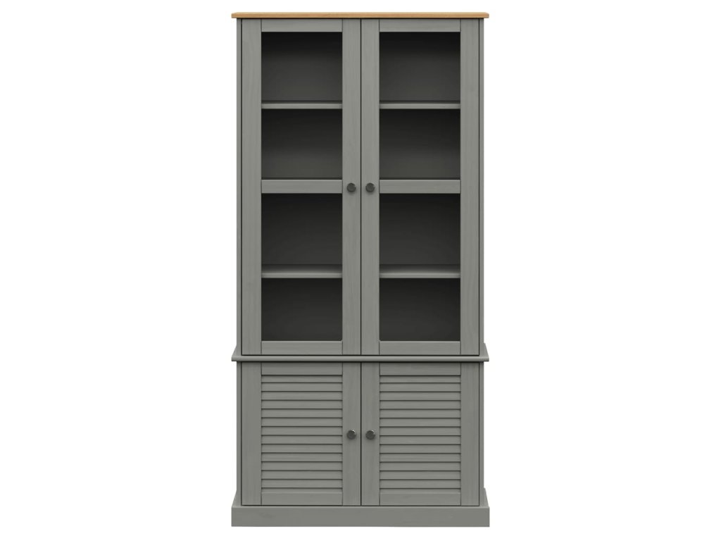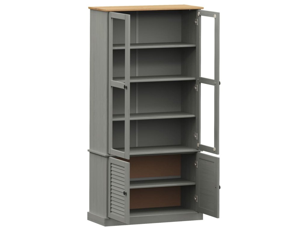 - Borovicový masív: Borovicový masív je krásny prírodný materiál. Borovicové drevo má rovnú kresbu a nachádzajú sa na ňom uzly, ktoré tomuto materiálu dodávajú charakteristický rustikálny vzhľad. Vitrína je vyrobená z masívneho borovicového dreva a je odolná a pevná.