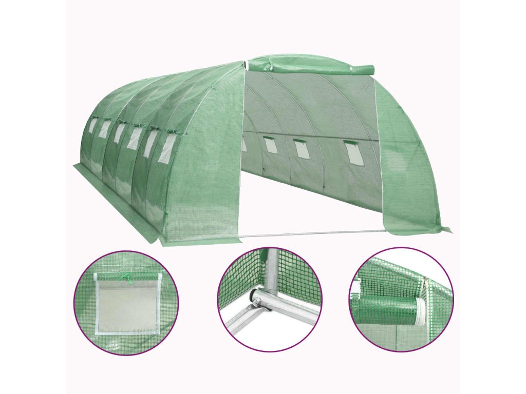 Tento skleník predstavuje skvelý spôsob, ako ochrániť rastliny pred vetrom, dažďom, slnkom či pred vtákmi. Skleník je vyrobený z PE sieťoviny s hustotou 140 g/m², ktorá je o 25 % ťažšia než bežné sieťoviny od iných výrobcov. Vďaka tomu dokáže ešte lepšie minimalizovať nepriaznivé vplyvy vonkajšieho prostredia. Fóliovník má pevný pozinkovaný oceľový rám, ktorý je odolný voči hrdzi a ktorý prináša mimoriadnu stabilitu. Skleník vetracie okienka s rozmermi 38x38 cm a jedny dvere s rozmermi 100x185 cm.