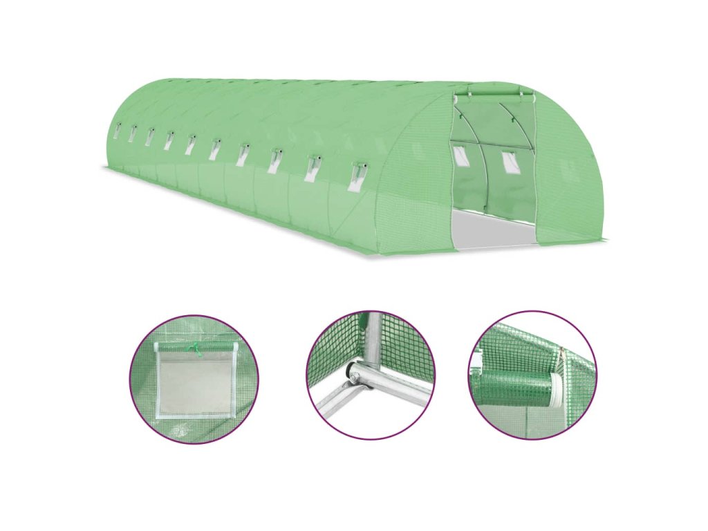 Tento skleník predstavuje skvelý spôsob, ako ochrániť rastliny pred vetrom, dažďom, slnkom či pred vtákmi. Skleník je vyrobený z PE sieťoviny s hustotou 140 g/m², ktorá je o 25 % ťažšia než bežné sieťoviny od iných výrobcov. Vďaka tomu dokáže ešte lepšie minimalizovať nepriaznivé vplyvy vonkajšieho prostredia. Fóliovník má pevný pozinkovaný oceľový rám, ktorý je odolný voči hrdzi a ktorý prináša mimoriadnu stabilitu. Skleník vetracie okienka s rozmermi 38x38 cm a jedny dvere s rozmermi 100x185 cm.