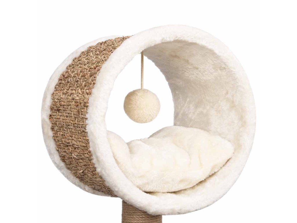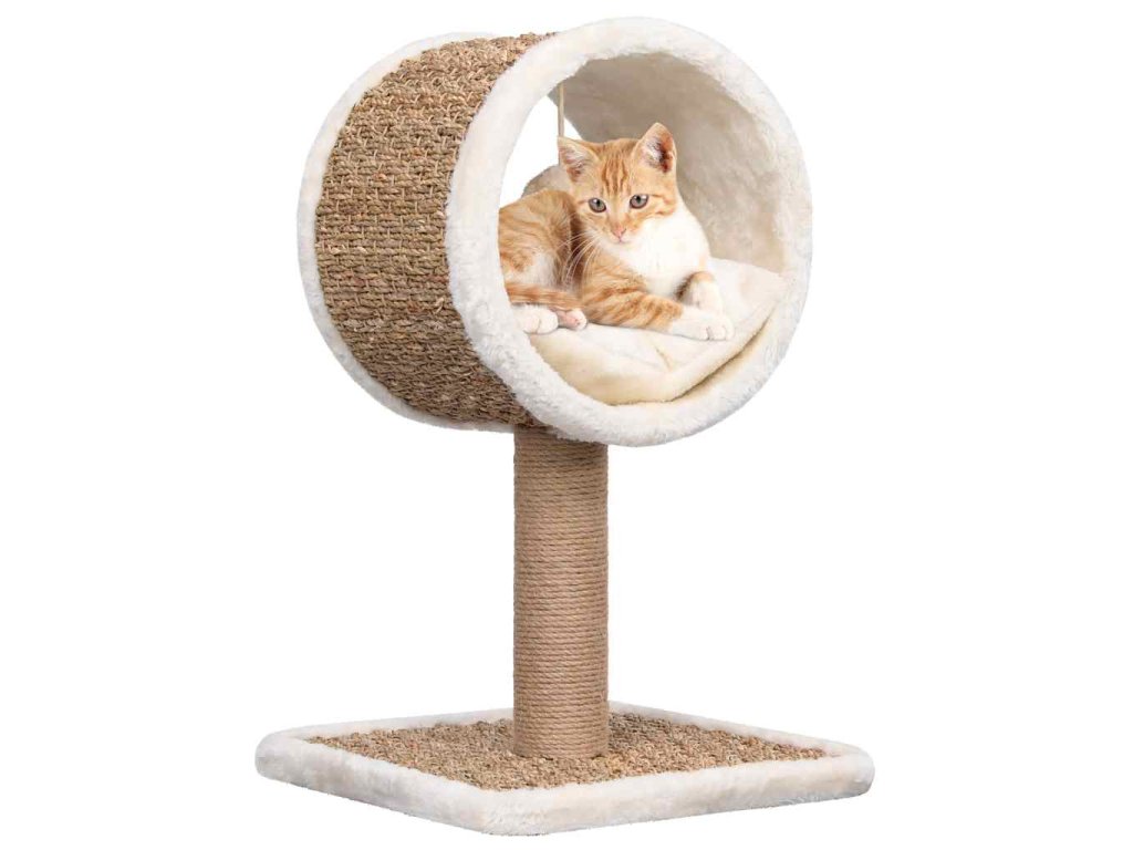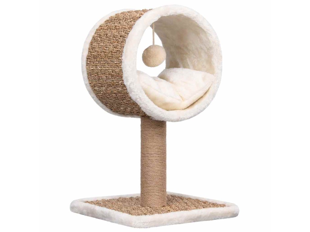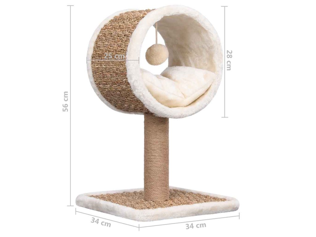 Škrabadlo sa zíde hlavne počas zimných mesiacov, keď vaši malí kamaráti trávia väčšinu času vnútri a nemajú dostatok pohybu, pretože sa budú mať kde ponaťahovať a pohrať. Škrabacie stĺpiky sú pokryté a obalené morskou trávou a vášmu mačaciemu kamarátovi poskytne praktické miesto na obrúsenie pazúrikov. Súčasťou stromu je aj visiaca hračka a na vrchu sa nachádza tunel, v ktorom sa môže vaša mačka zabávať. Základňa je pevná a stabilná.