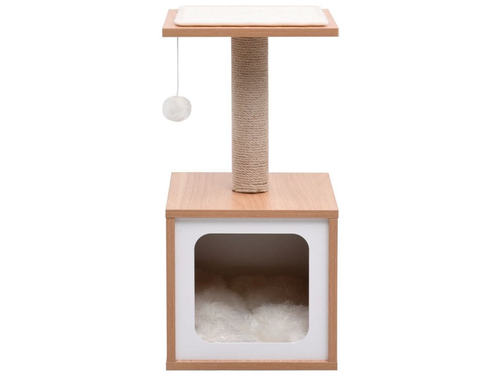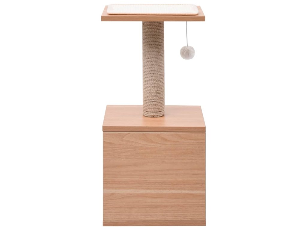 Vaši mačací priatelia si môžu ostriť pazúriky na škrabacích stĺpikoch z juty, ktoré im poskytnú zdravý spôsob ako si tento svoj inštinkt trénovať. Základňa mačacieho stromu je robustná a stabilná. Mačky sa môžu veselo naháňať a skákať hore dole po strome. Najvyššia plošina je porkytá odnímateľnou sisalovou podložkou. Keď sa vašim malým kamarátom prestane chcieť hrať, zaiste si na tejto plošine radi oddýchnu, pretože z nej budú mať lepší výhľad. Súčasťou stromu pre mačky je aj útulný domček, aby si mohla mačka zdriemnuť. Pohodlná podložka v domčeku sa dá oprať. Súčasťou balenia je aj loptička na šnúrke pre väčšiu zábavu.
