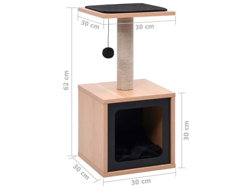 Tento krásny domček predstavuje ideálne miesto, kde sa môže mačka dosýtosti zabaviť škrabaním či lezením alebo sa ukryť do domčeka, pozorovať okolie a nerušene odpočívať. Určite sa bude hodiť do akéhokoľvek interiéru.
