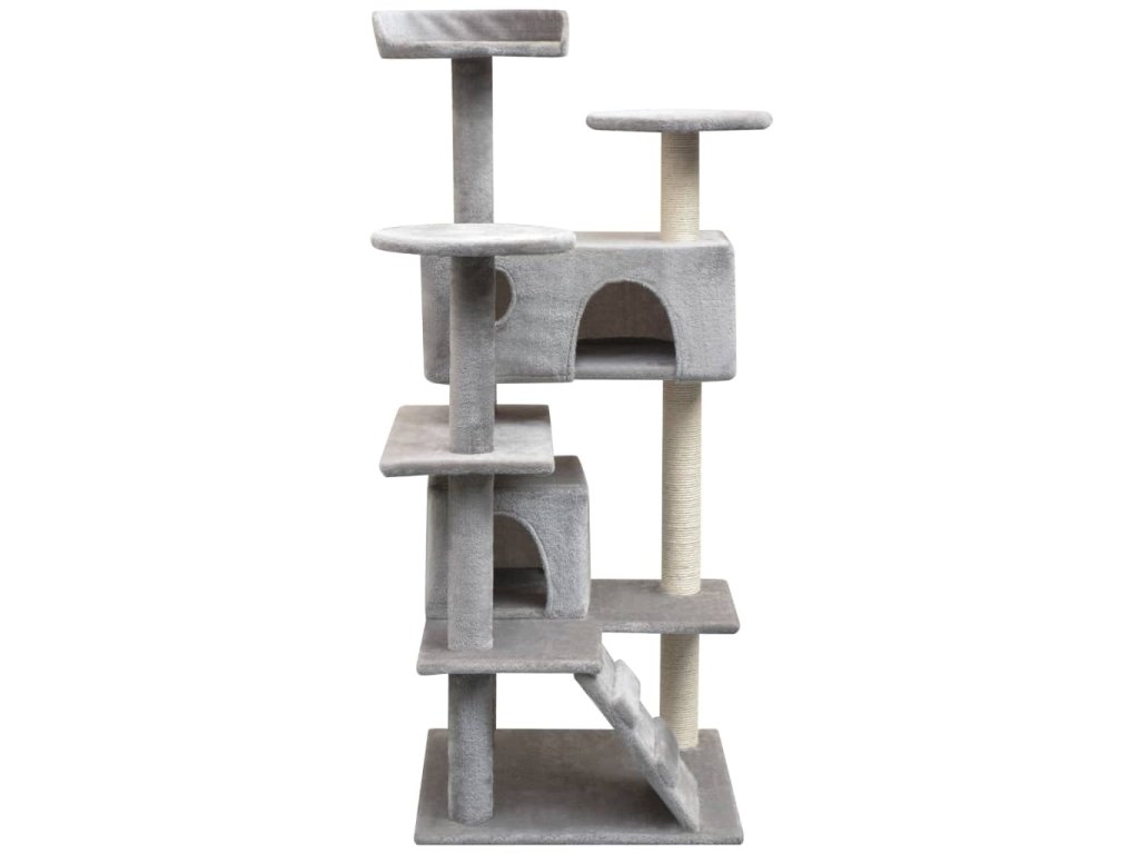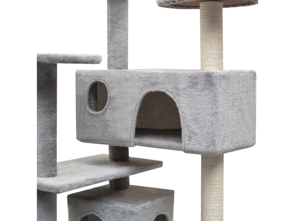 Vaši mačací priatelia si môžu ostriť svoje pazúriky na škrabacích stĺpikoch obalených v sisalovom lane, ktoré poskytujú zdravý spôsob škriabania. Na tejto mačacej veži na hranie si taktiež budú vychutnávať hru na prenasledovanie počas skákania hore a dole. Keď sa vaši malí priatelia dohrajú, môžu oddychovať na horných plošinách, odkiaľ majú lepší výhľad. Majú možnosť schovať sa do útulných domčekov a pospať si.