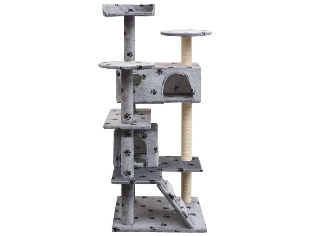 vidaXL Škrabadlo pre mačky so sisalovými stĺpikmi, 125 cm, sivé s potlačou labiek
