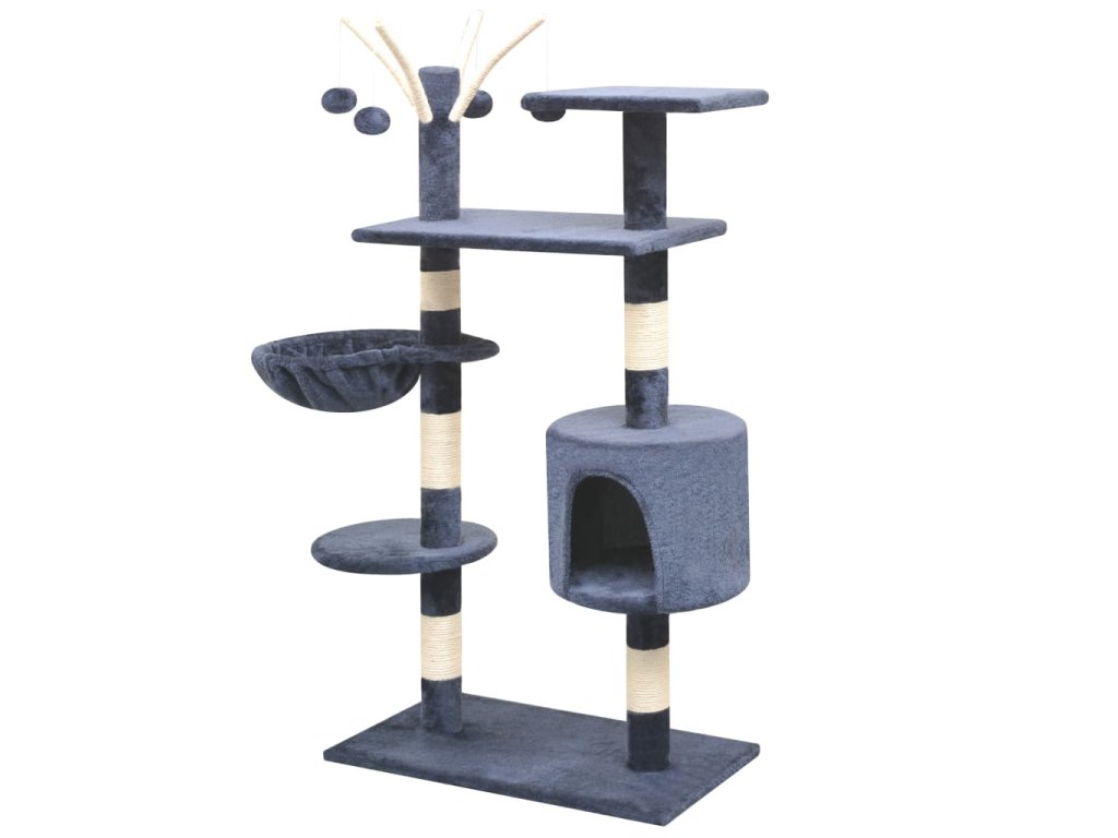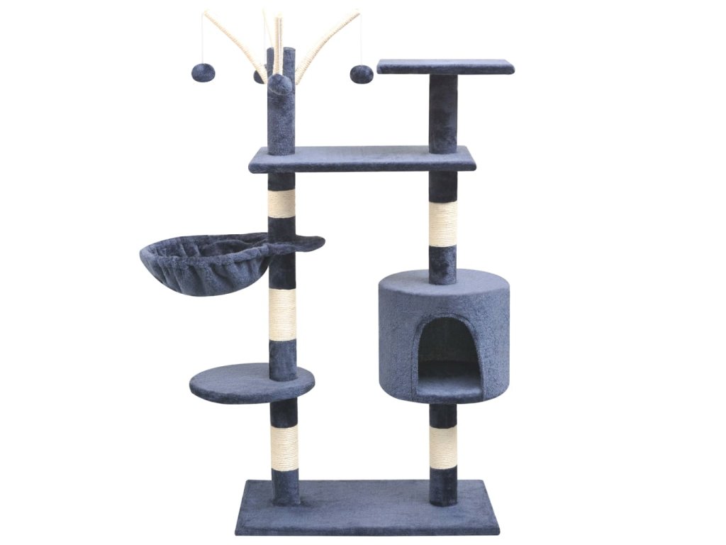 Vaši mačací priatelia si môžu ostriť svoje pazúriky na škrabacích stĺpikoch obalených v sisalovom lane, ktoré poskytujú zdravý spôsob škriabania. Na tejto mačacej veži na hranie si taktiež budú vychutnávať hru na prenasledovanie počas skákania hore a dole. V hornej časti mačacieho stromu sú zavesené hračky, ktoré zaujmú vaše zvedavé mačky. Keď sa vaši malí priatelia dohrajú, môžu oddychovať na horných plošinách, odkiaľ majú lepší výhľad. Alebo sa môžu schovať do útulných domčekov a pospať si alebo si odpočinúť v pohodlnej hojdacej sieti.