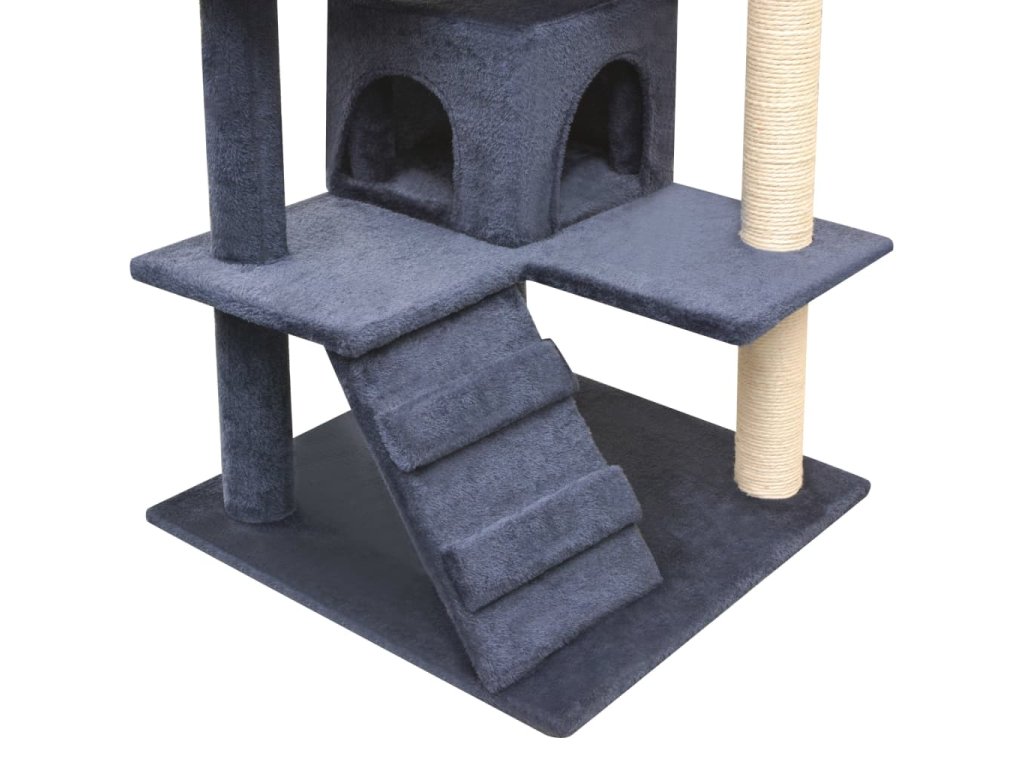 Vaši mačací priatelia si môžu ostriť svoje pazúriky na škrabacích stĺpikoch obalených v sisalovom lane, ktoré poskytujú zdravý spôsob škriabania. Na tejto mačacej veži na hranie si taktiež budú vychutnávať hru na prenasledovanie počas skákania hore a dole. Keď sa vaši malí priatelia dohrajú, môžu oddychovať na horných plošinách, odkiaľ majú lepší výhľad. Majú možnosť schovať sa do útulných domčekov a pospať si.
