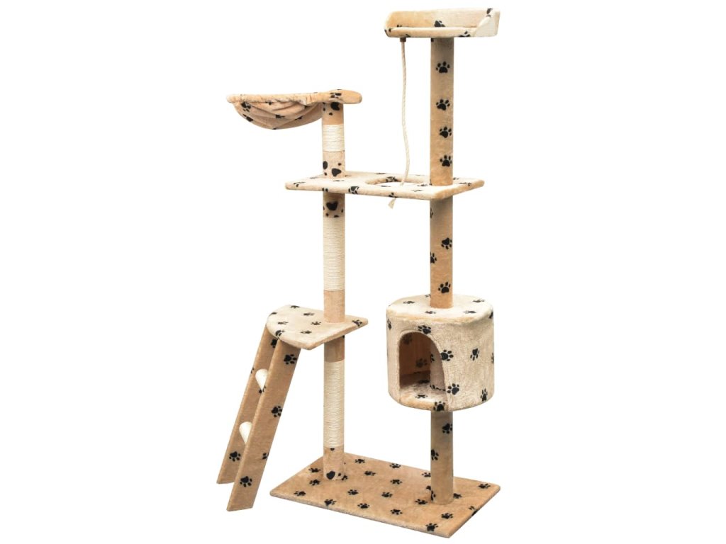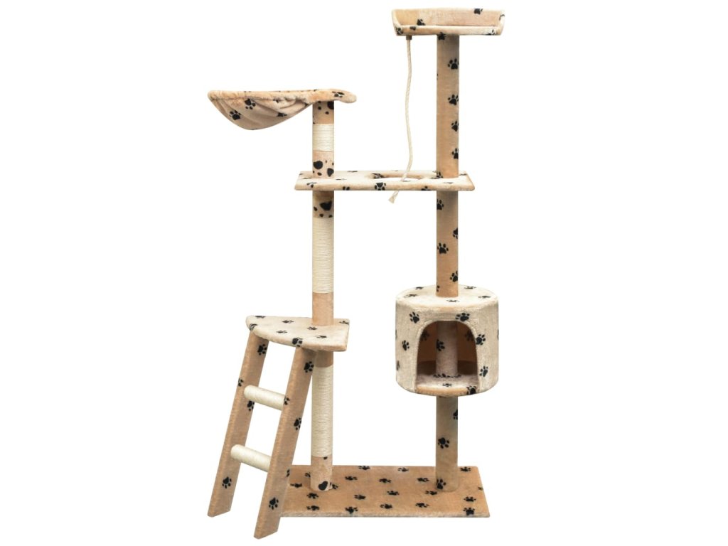 vidaXL Škrabadlo pre mačky so sisalovými stĺpikmi, 150 cm, béžové s potlačou labiek