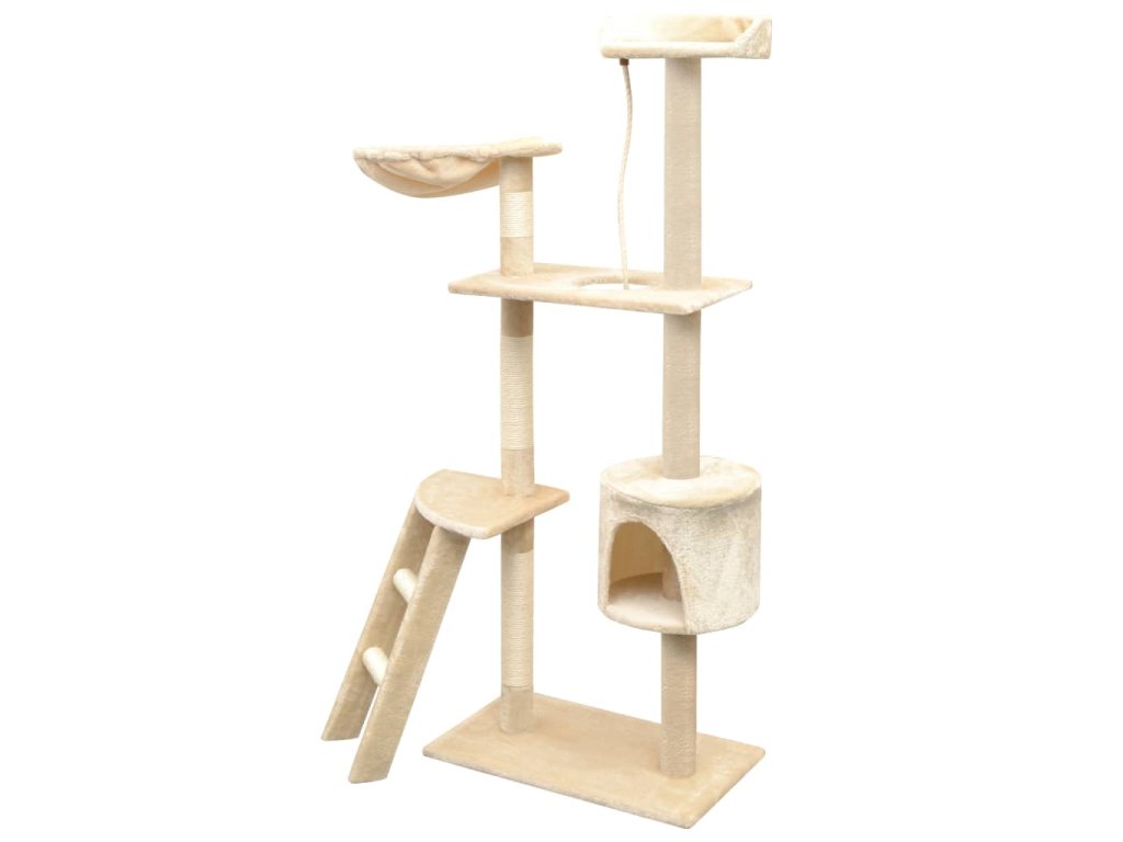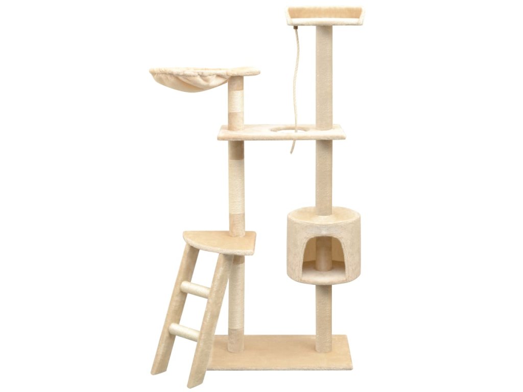 Vaši mačací priatelia si môžu ostriť svoje pazúriky na škrabacích stĺpikoch obalených v sisalovom lane, ktoré poskytujú zdravý spôsob škriabania. Na tejto mačacej veži na hranie si taktiež budú vychutnávať hru na prenasledovanie počas skákania hore a dole. Pod hornou plošinou mačacieho stromu je zavesené lano na hranie, ktoré zaujme vaše zvedavé mačky. Keď sa vaši malí priatelia dohrajú, môžu oddychovať na horných plošinách, odkiaľ majú lepší výhľad. Alebo sa môžu schovať do útulných domčekov a pospať si alebo si odpočinúť v pohodlnej hojdacej sieti.