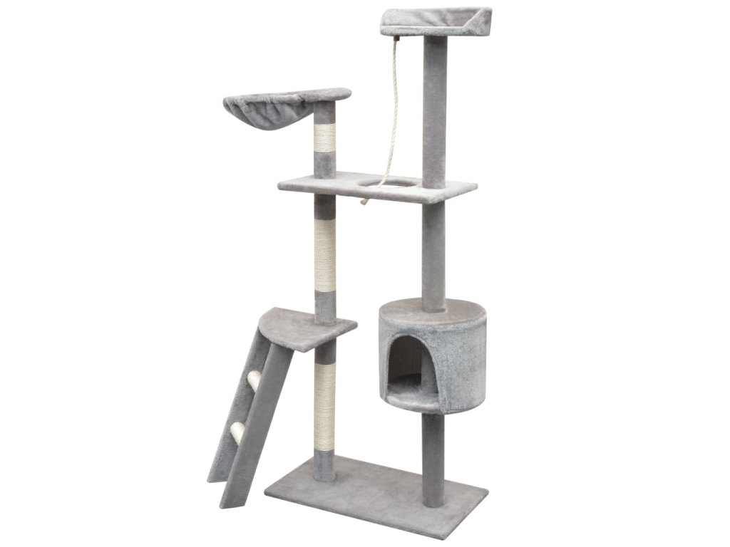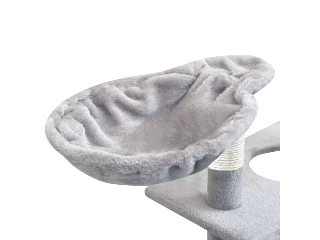 Vaši mačací priatelia si môžu ostriť svoje pazúriky na škrabacích stĺpikoch obalených v sisalovom lane, ktoré poskytujú zdravý spôsob škriabania. Na tejto mačacej veži na hranie si taktiež budú vychutnávať hru na prenasledovanie počas skákania hore a dole. Pod hornou plošinou mačacieho stromu je zavesené lano na hranie, ktoré zaujme vaše zvedavé mačky. Keď sa vaši malí priatelia dohrajú, môžu oddychovať na horných plošinách, odkiaľ majú lepší výhľad. Alebo sa môžu schovať do útulných domčekov a pospať si alebo si odpočinúť v pohodlnej hojdacej sieti.