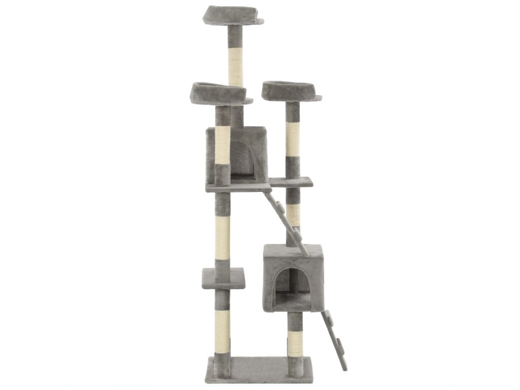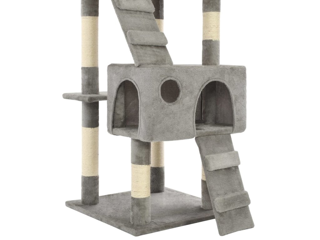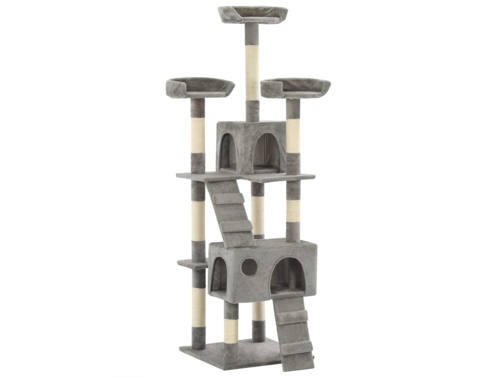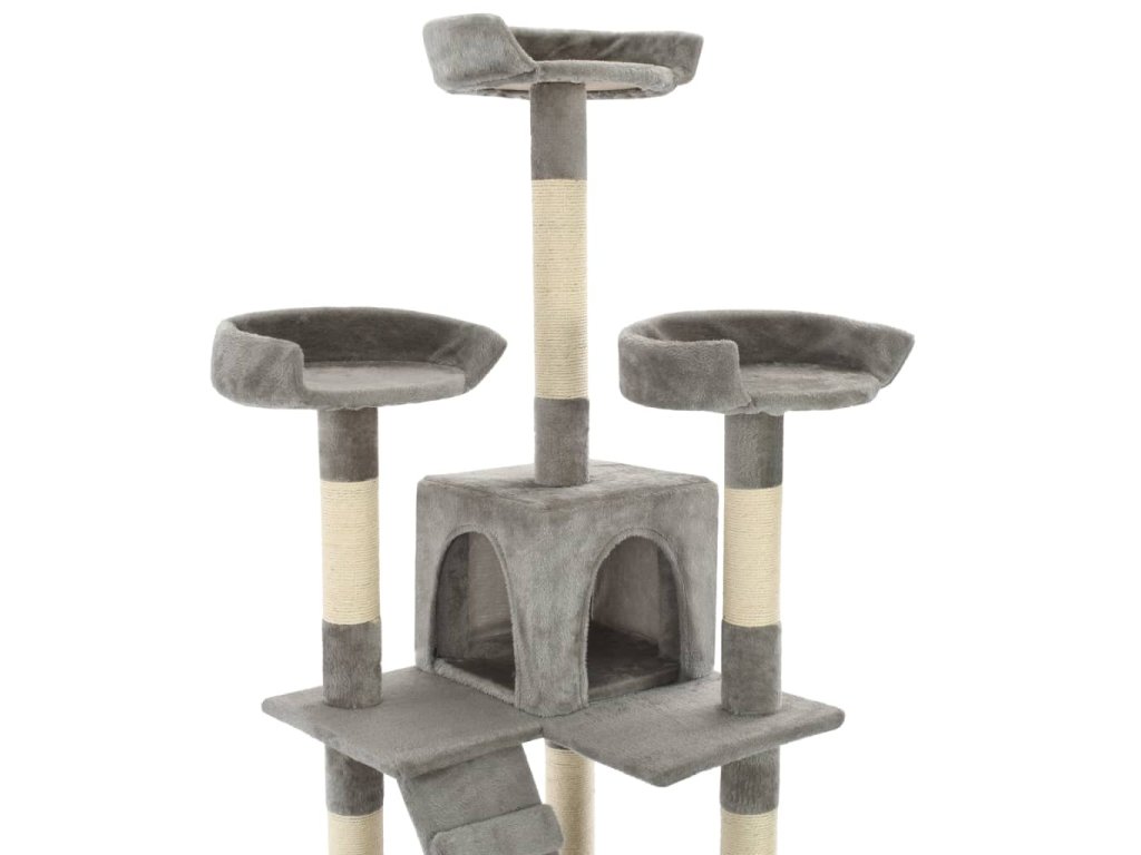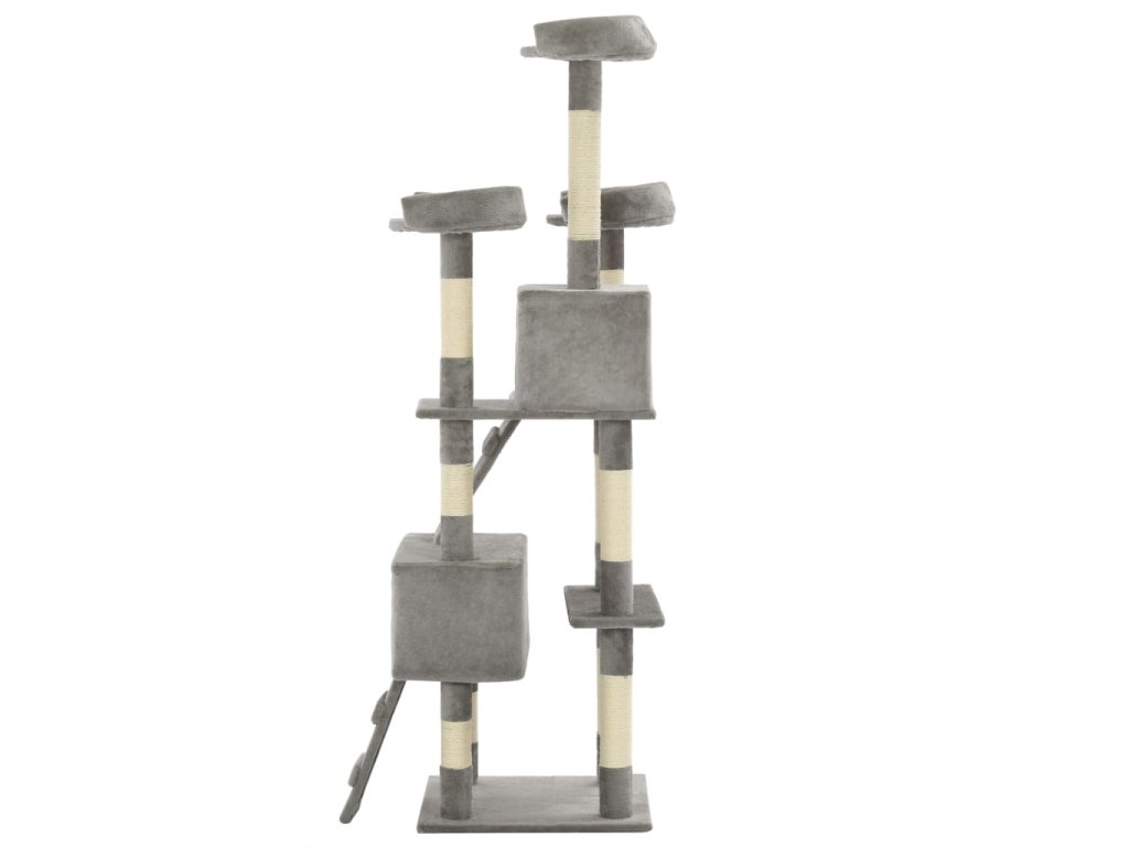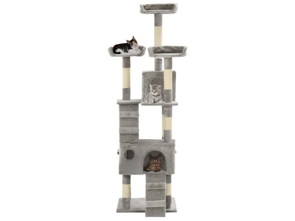 Vaši mačací priatelia si môžu ostriť svoje pazúriky na škrabacích stĺpoch obalených v sisalovom lane, ktoré poskytnú zdravú možnosť pre škrabanie. Tiež si budú užívať vzájomné naháňanie, keď budú skákať hore-dole po tomto zábavnom centre. Keď budú mať vaši malí priatelia dosť zábavy, môžu si vychutnávať oddych na horných plošinách, odkiaľ majú lepší výhľad. Môžu sa tiež schovať v útulných domčekoch, kde si môžu zdriemnuť. So všetkými týmito zábavnými funkciami sa toto zábavné centrum pre mačky stane obľúbeným miestom oddychu vášho chlpatého priateľa! Mačacie škrabadlo sa jednoducho montuje.